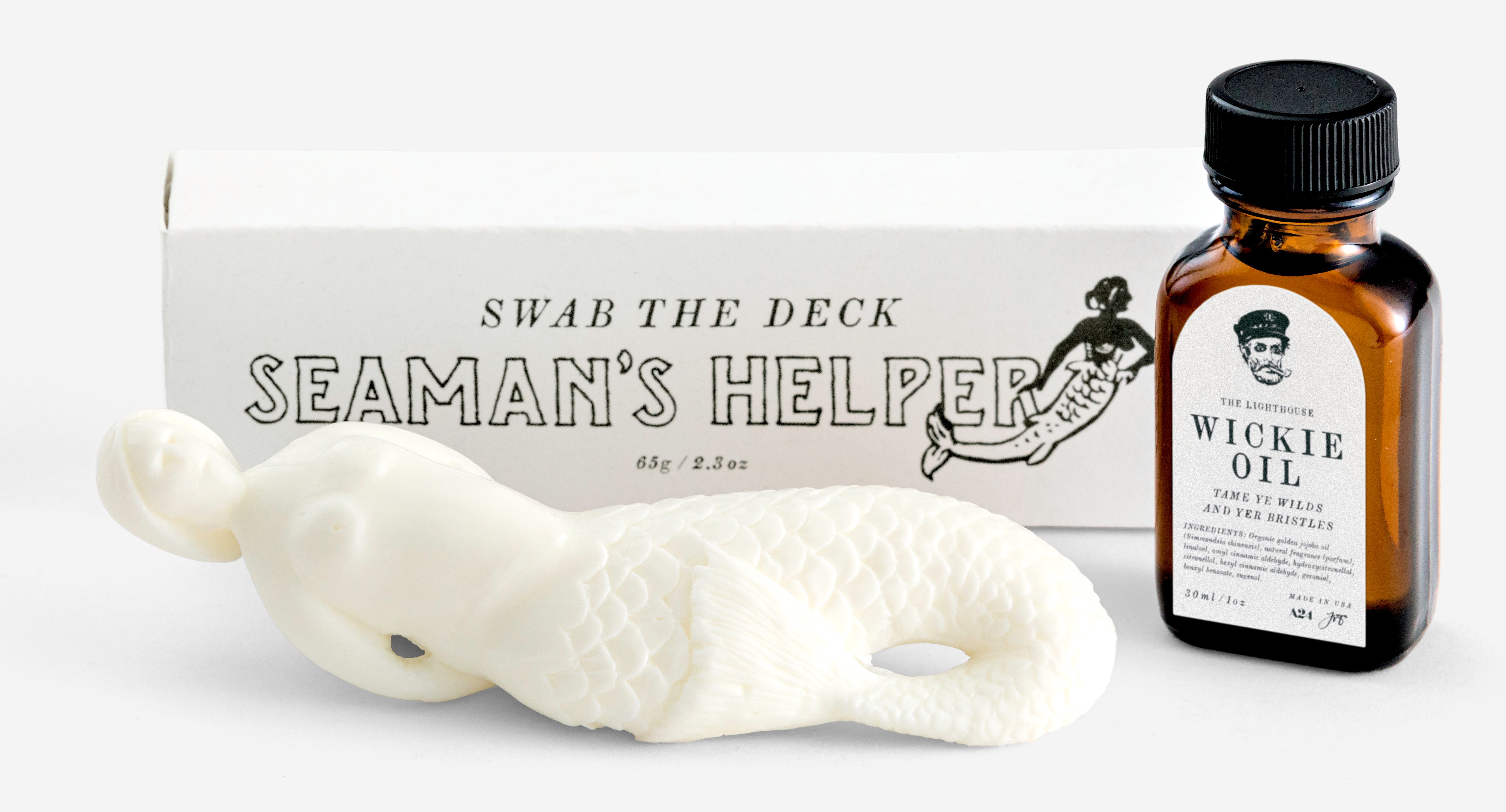 Set includes 1 scented beard oil fit for a sea king and 1 lathering soap for the lusty seaman. Smells of sea foam, black waves, biblical storms, and debauchery. With bergamot, Gurjun Balsam, Texas cedarwood, basil, clove leaf, cornmint, eucalyptus, cardamon, seaweed absolute and natural isolates.