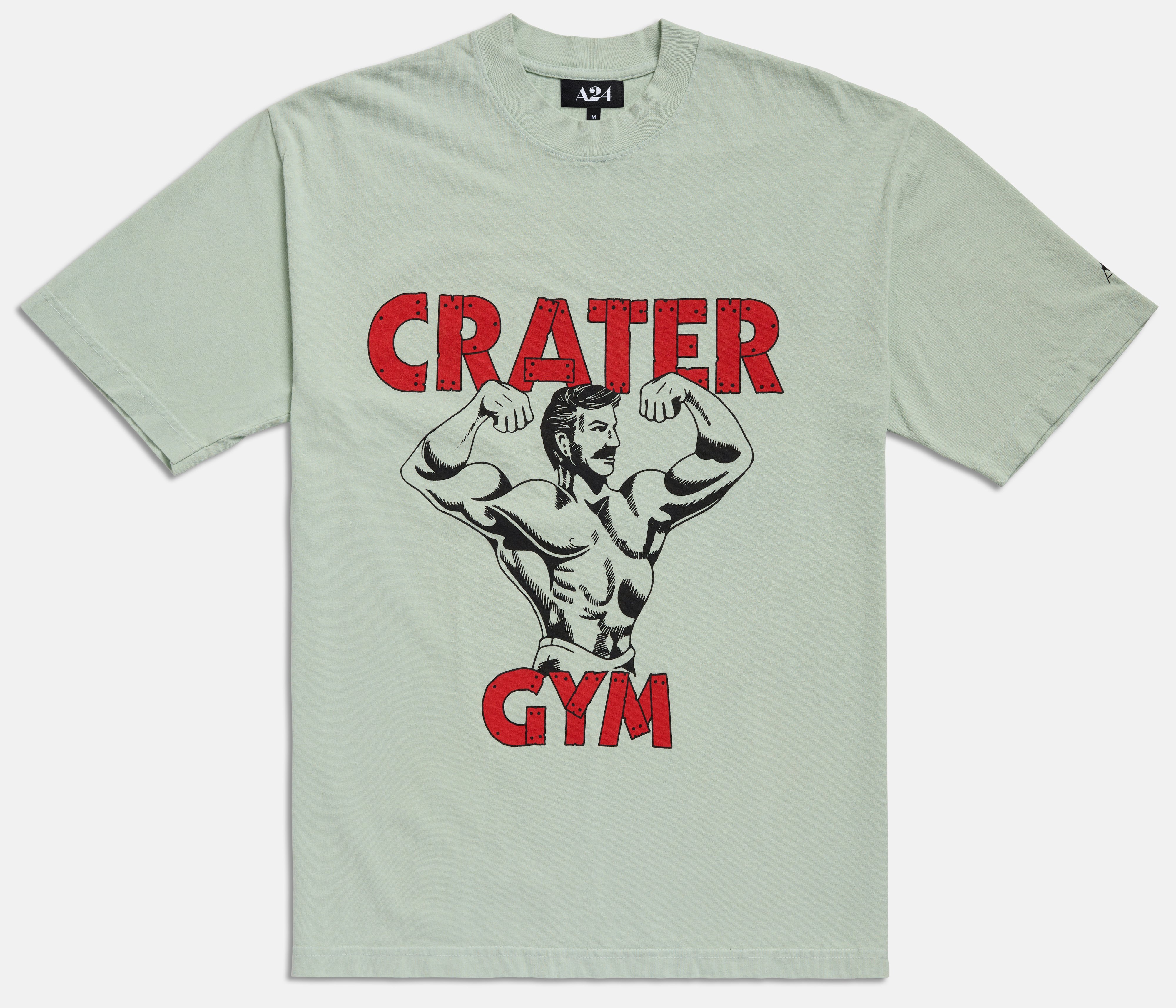 Short sleeve mint cotton t-shirt with screen printed Crater Gym logo on chest and text on back.