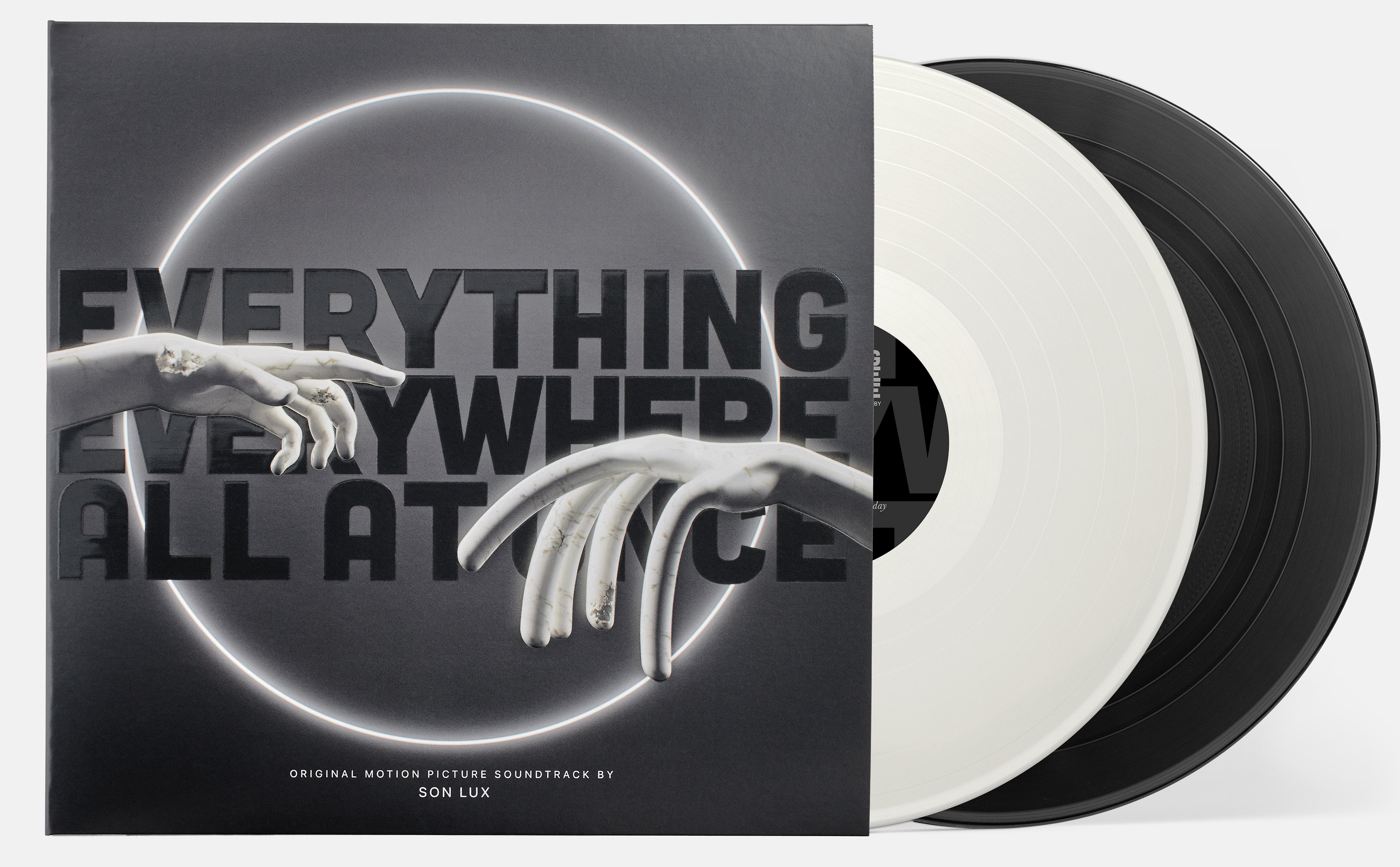 Son Lux's original score for Everything Everywhere All At Once on black and white vinyl. Includes bonus tracks featuring Randy Newman, Mitski and David Byrne, and Moses Sumney.