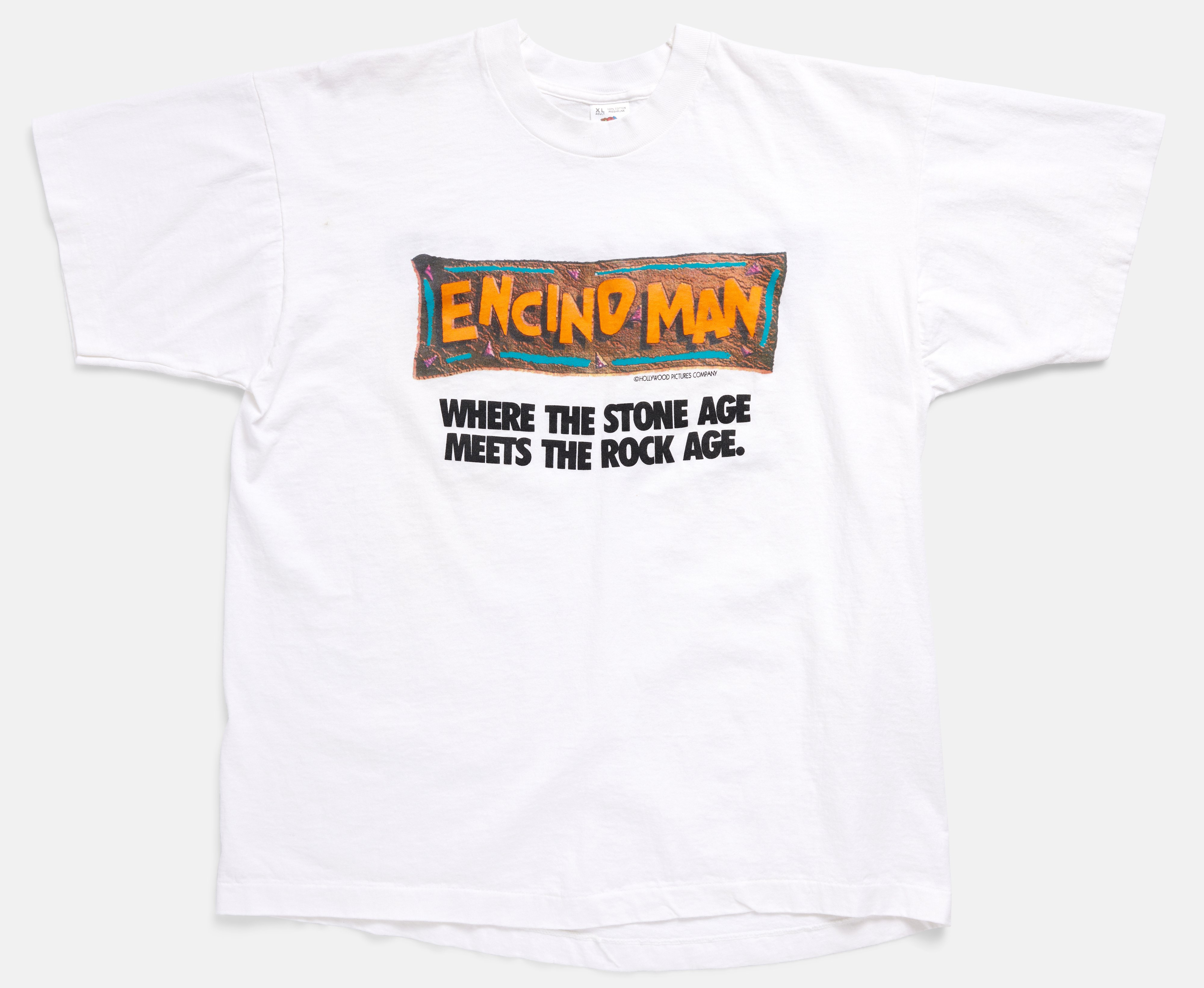 Encino Man (1992) "Where the Stone Age meets the Rock Age" promotional t-shirt. Excellent condition.