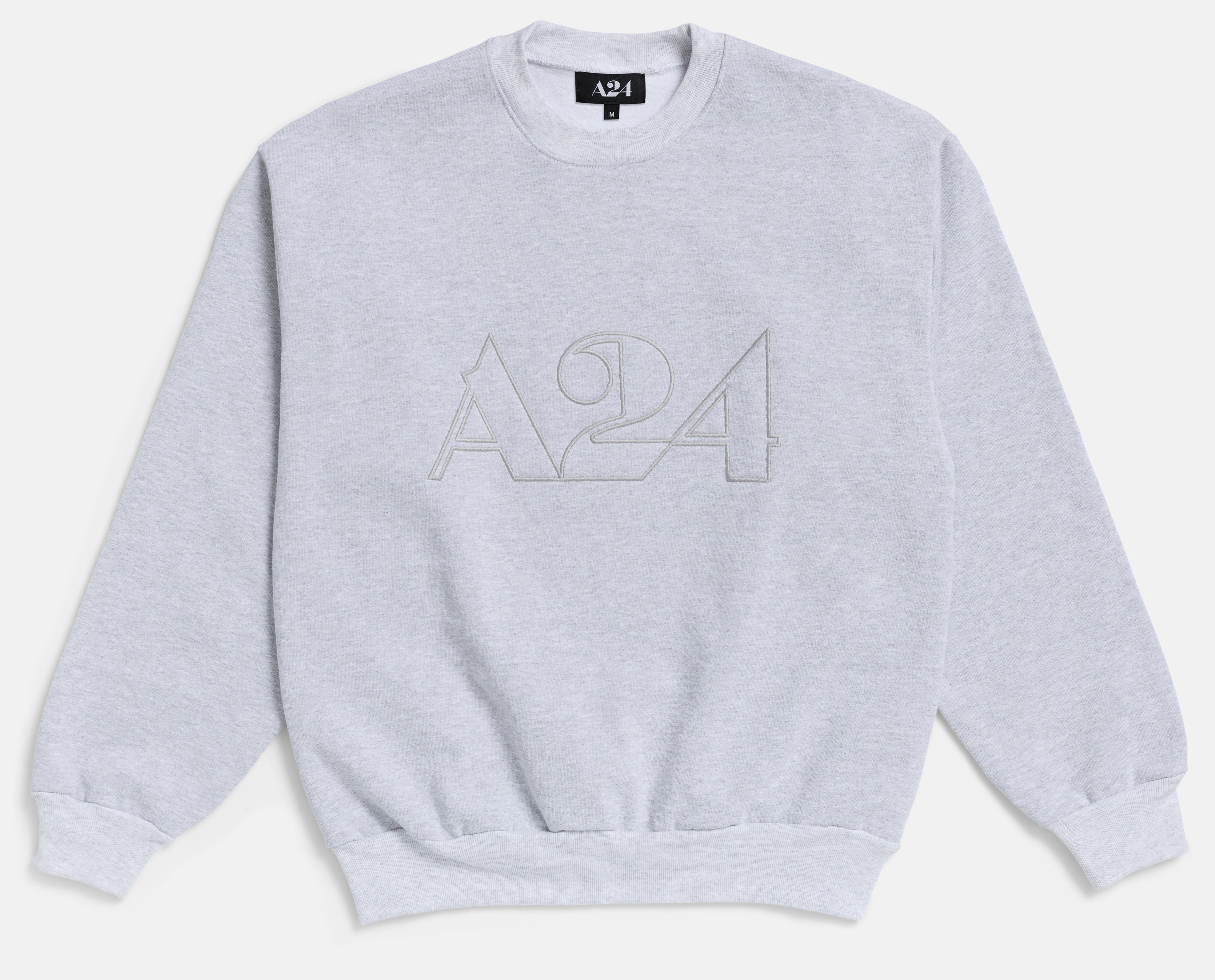 Grey crewneck with embroidered logo on the front.