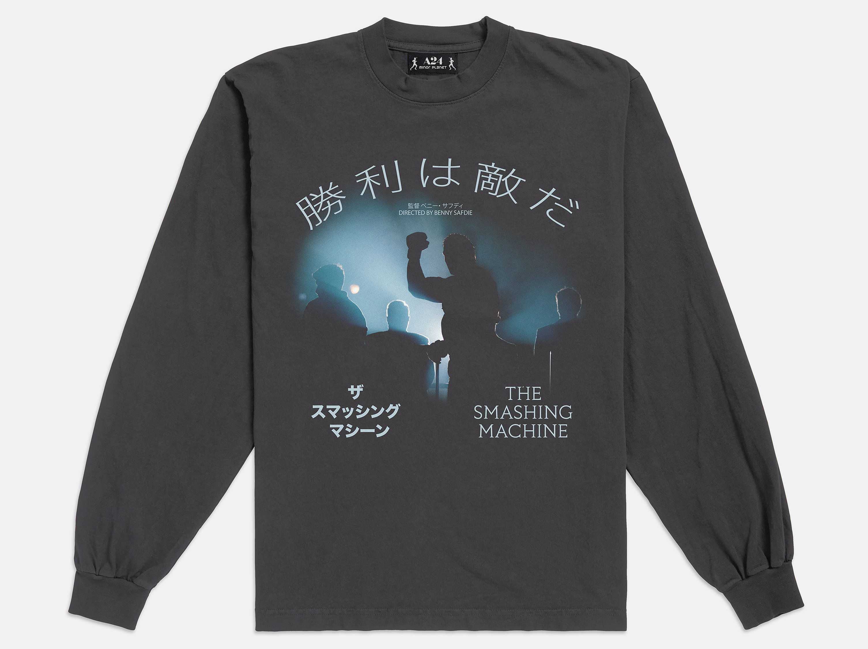 Washed black long sleeve with screen printed graphics, from The Smashing Machine x Minor Planet collection.