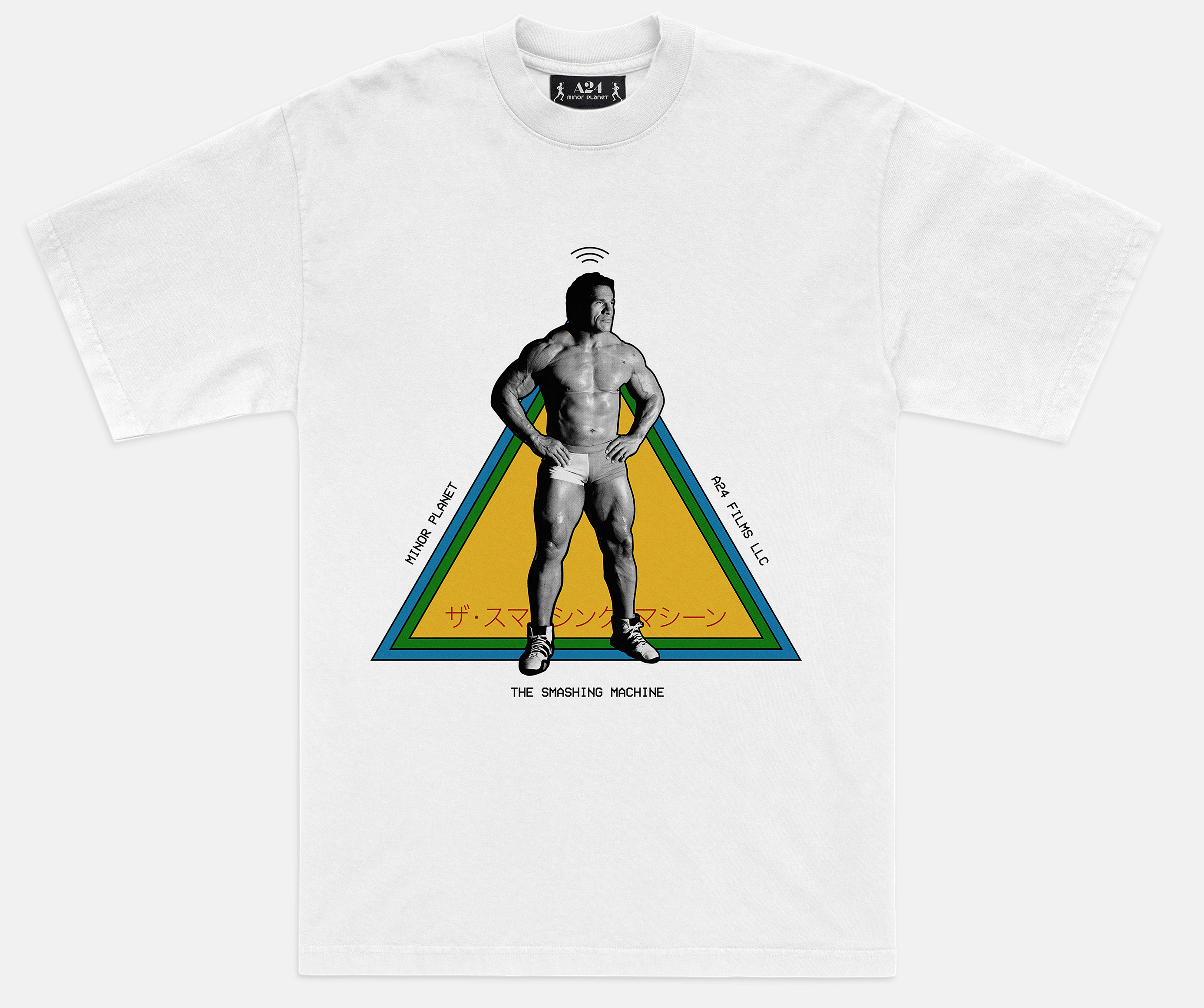 White t-shirt with screen printed graphics, from The Smashing Machine x Minor Planet collection.