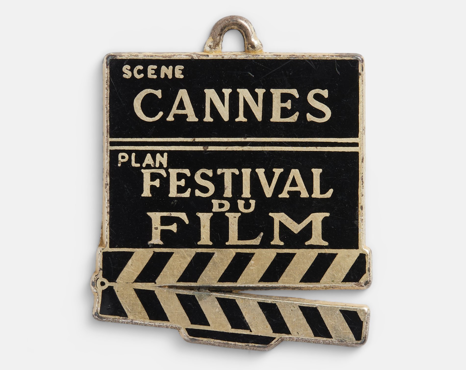 Cannes Film Festival slate pendant. Great vintage condition. 1.5" wide.