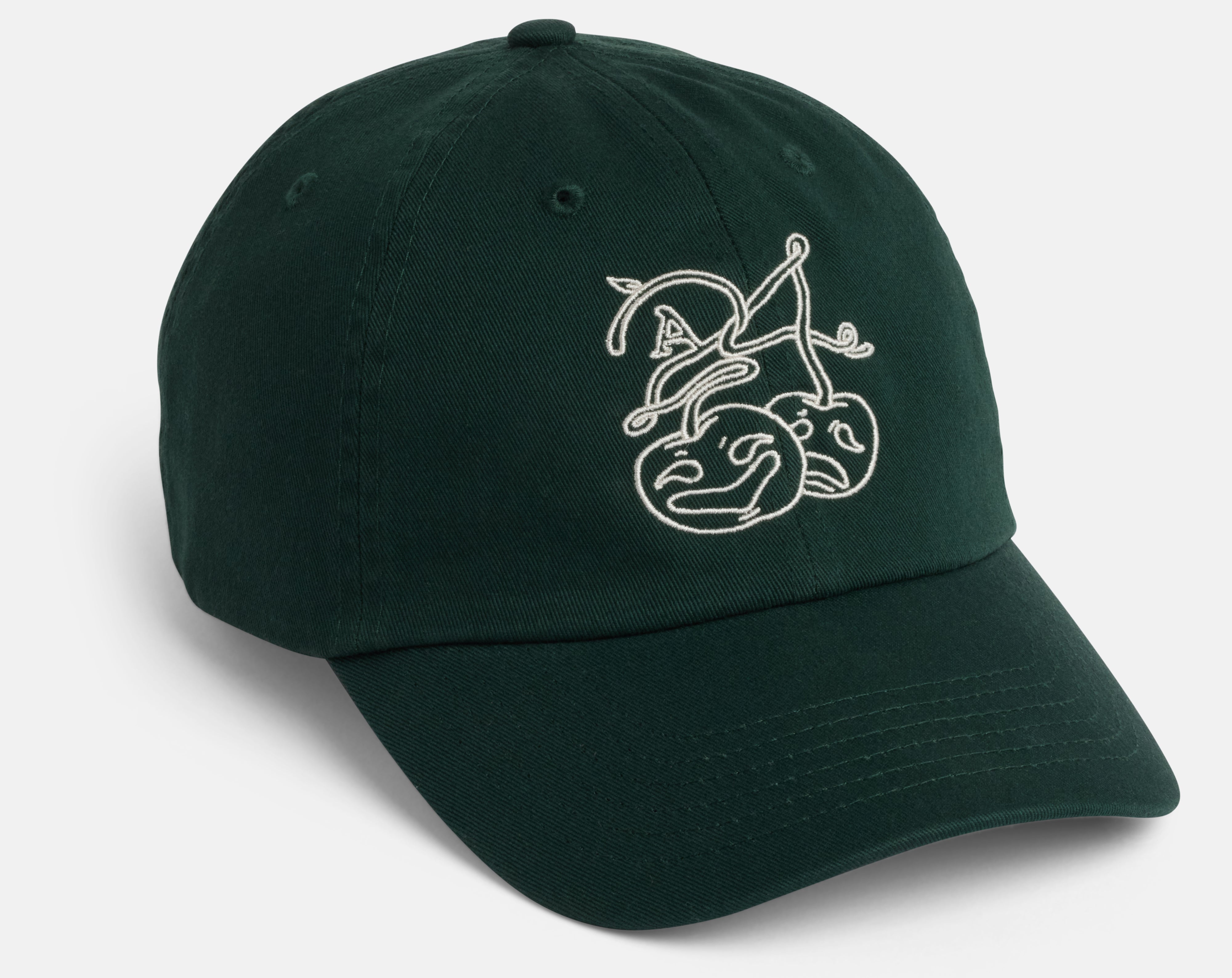 Evergreen structured lightweight cotton twill cap with adjustable strap. Off white logo embroidery on front.