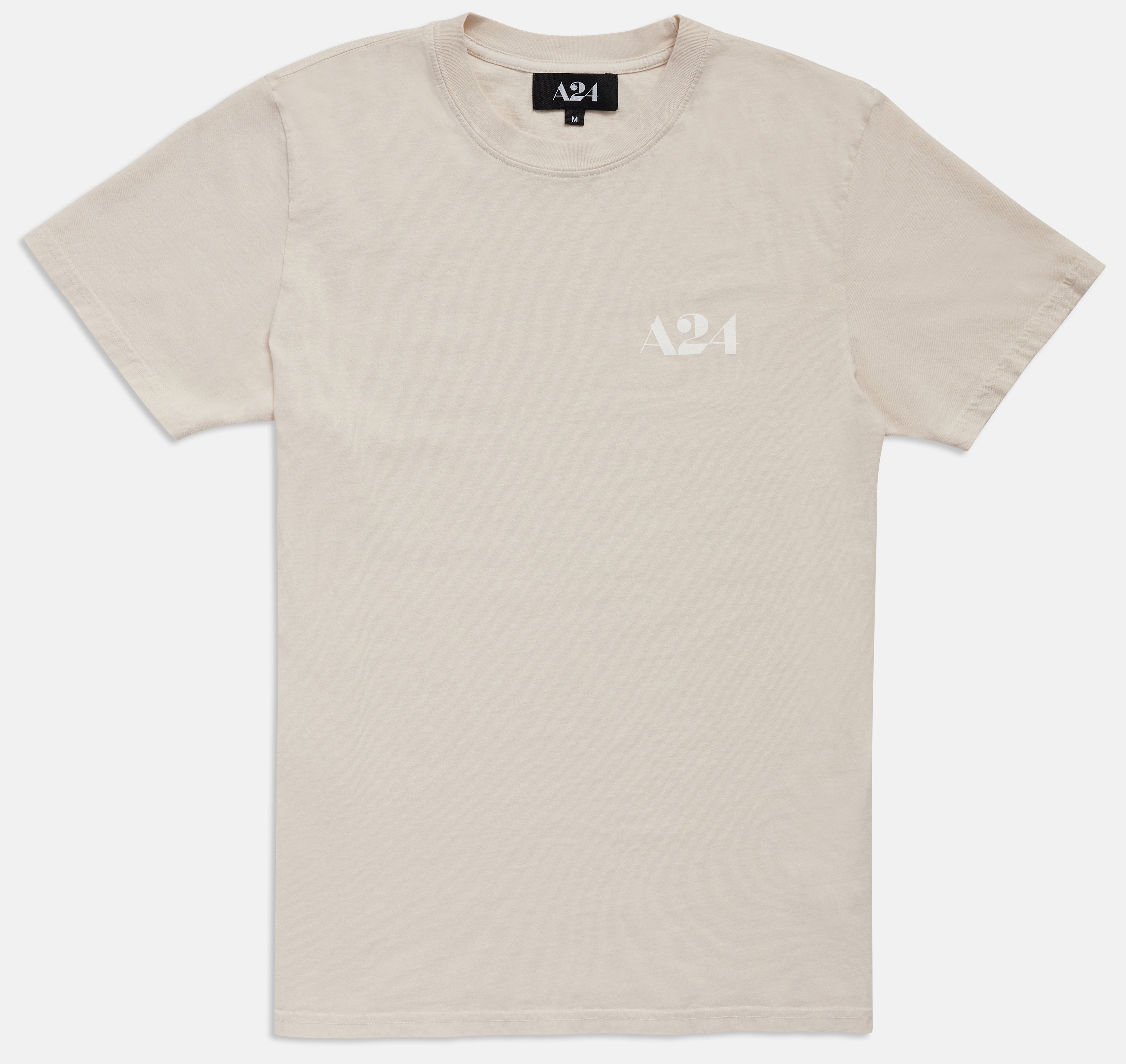 Soft cotton blend cut-and-sew t-shirt in cream. White logo on left chest and A24 woven label inside. Fits true-to-size.