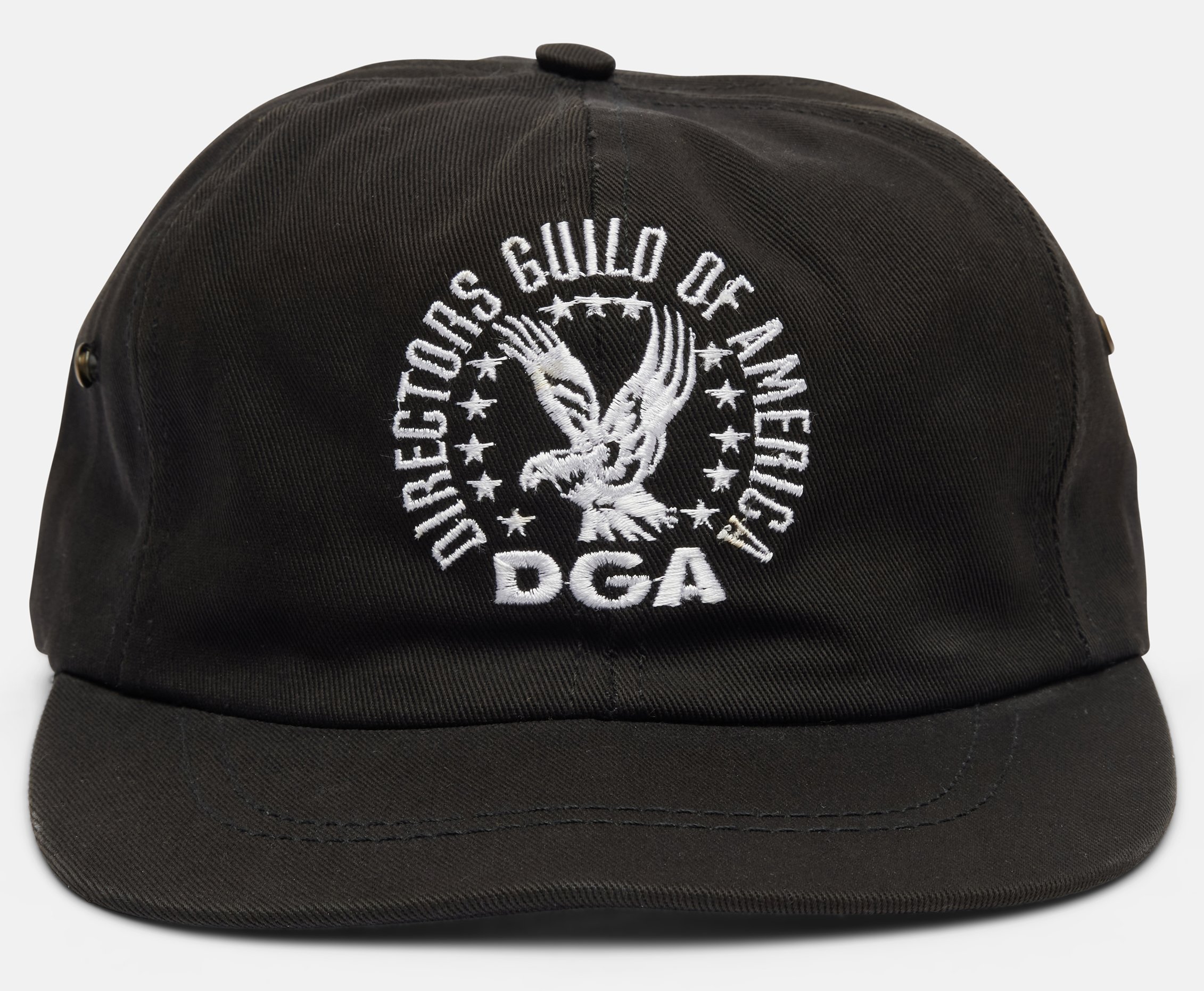 Embroidered hat for the Director's Guild of America with brown leather strapback. Good condition.