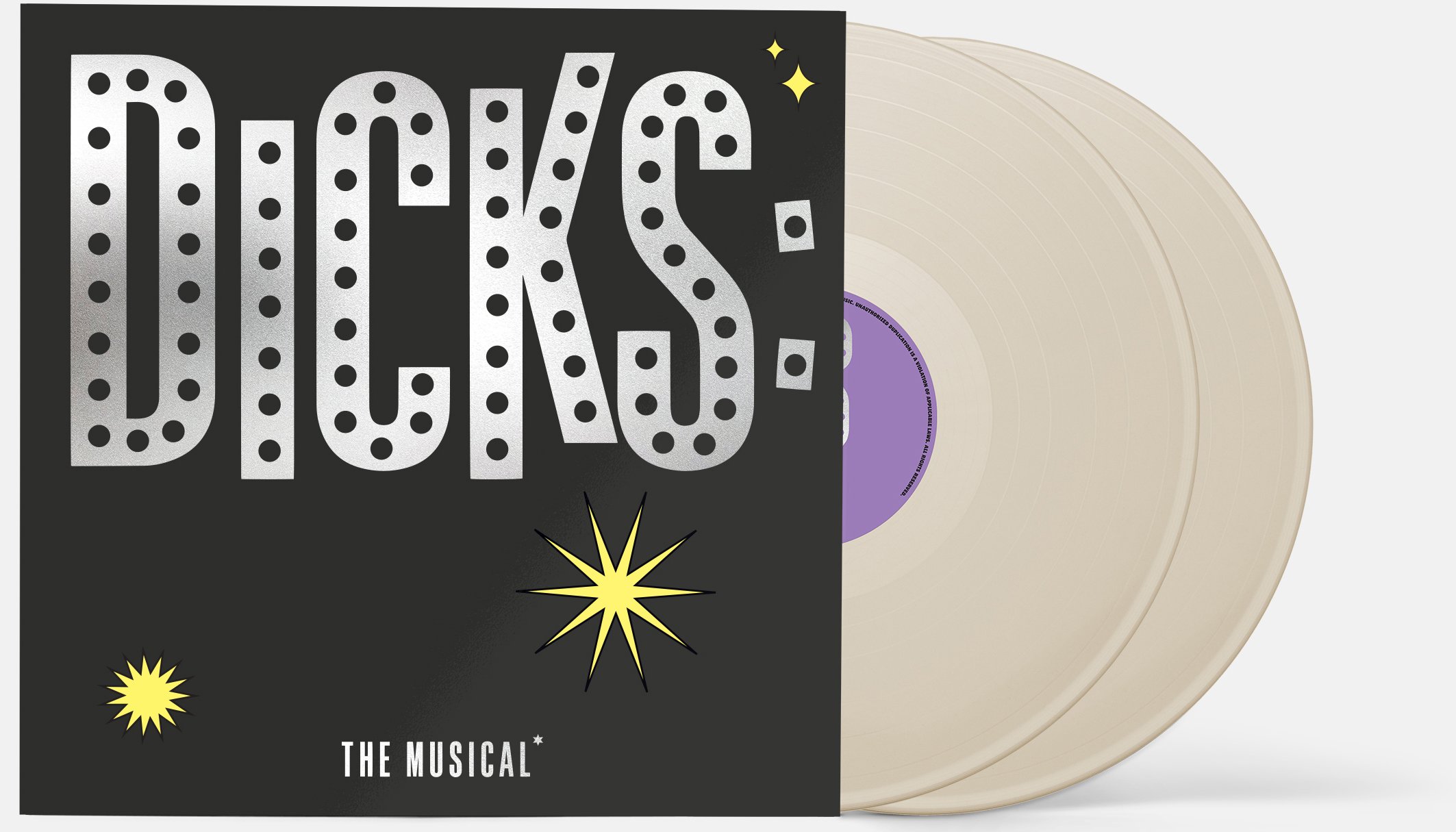 Dicks: The Musical Original Soundtrack pressed on creamy white — customizable with accompanying character sticker pack. Featuring original songs by Megan Mullally, Nathan Lane, Bowen Yang, Aaron Jackson, Josh Sharp, and Megan Thee Stallion & original score by Marius de Vries and Karl Saint Lucy.