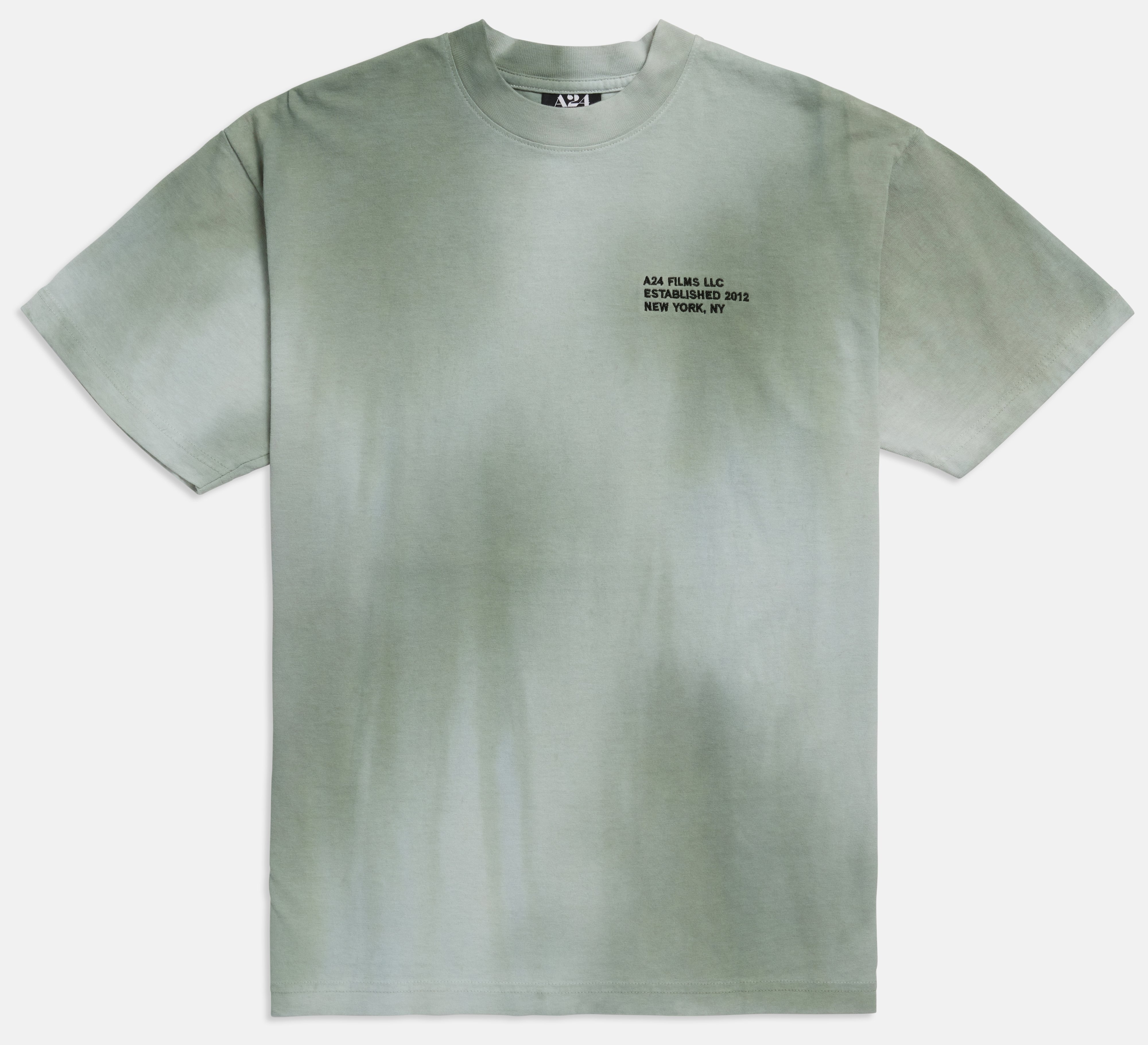 Hand Dip-Dyed short sleeve cotton t-shirt with black embroidery on left chest and A24 woven label inside. Fits true-to-size.