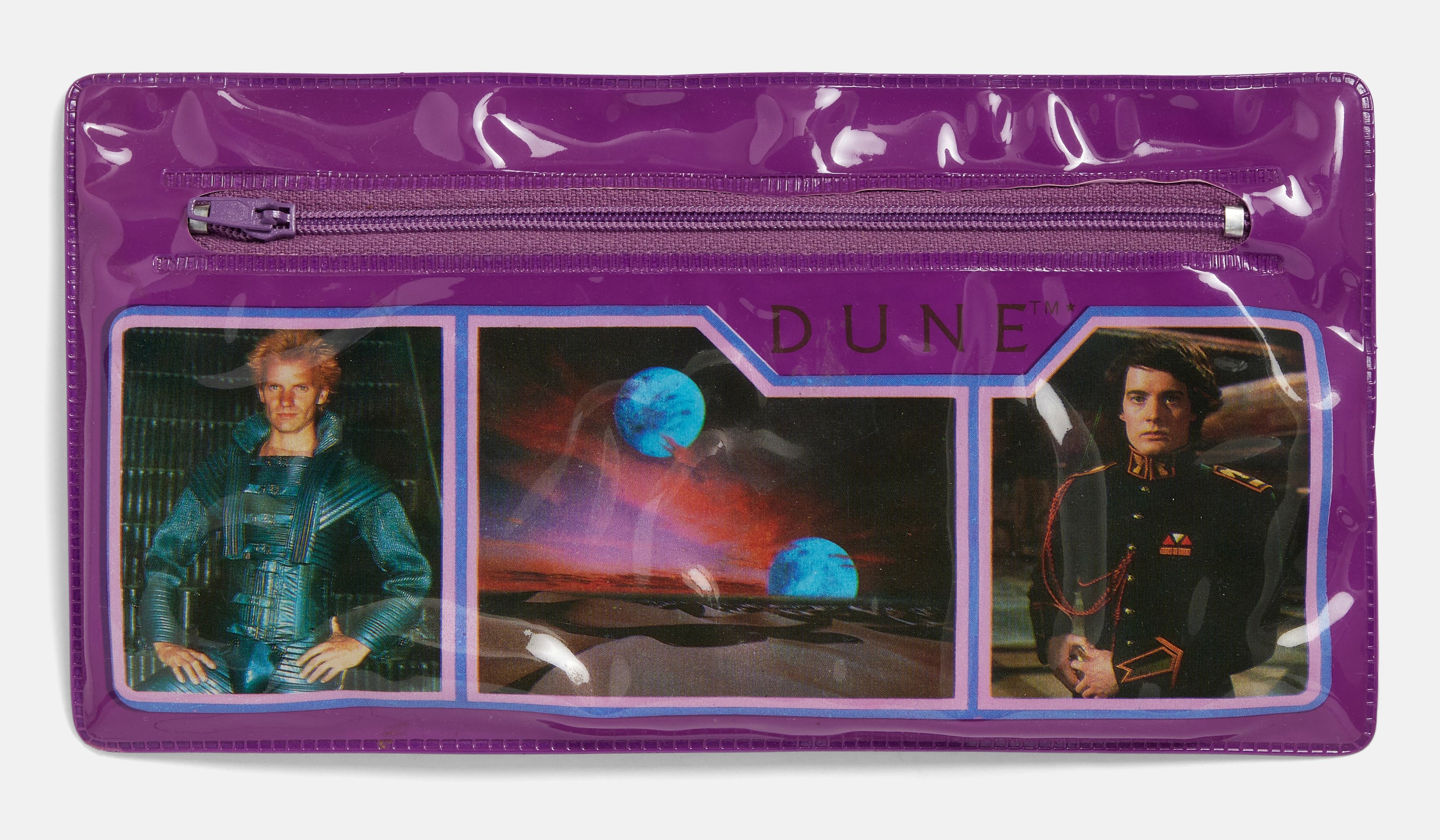 Promotional zippered pencil pouch for David Lynch's Dune (1984). White markings on backside (see photos). Comes with two collectible cards inside.