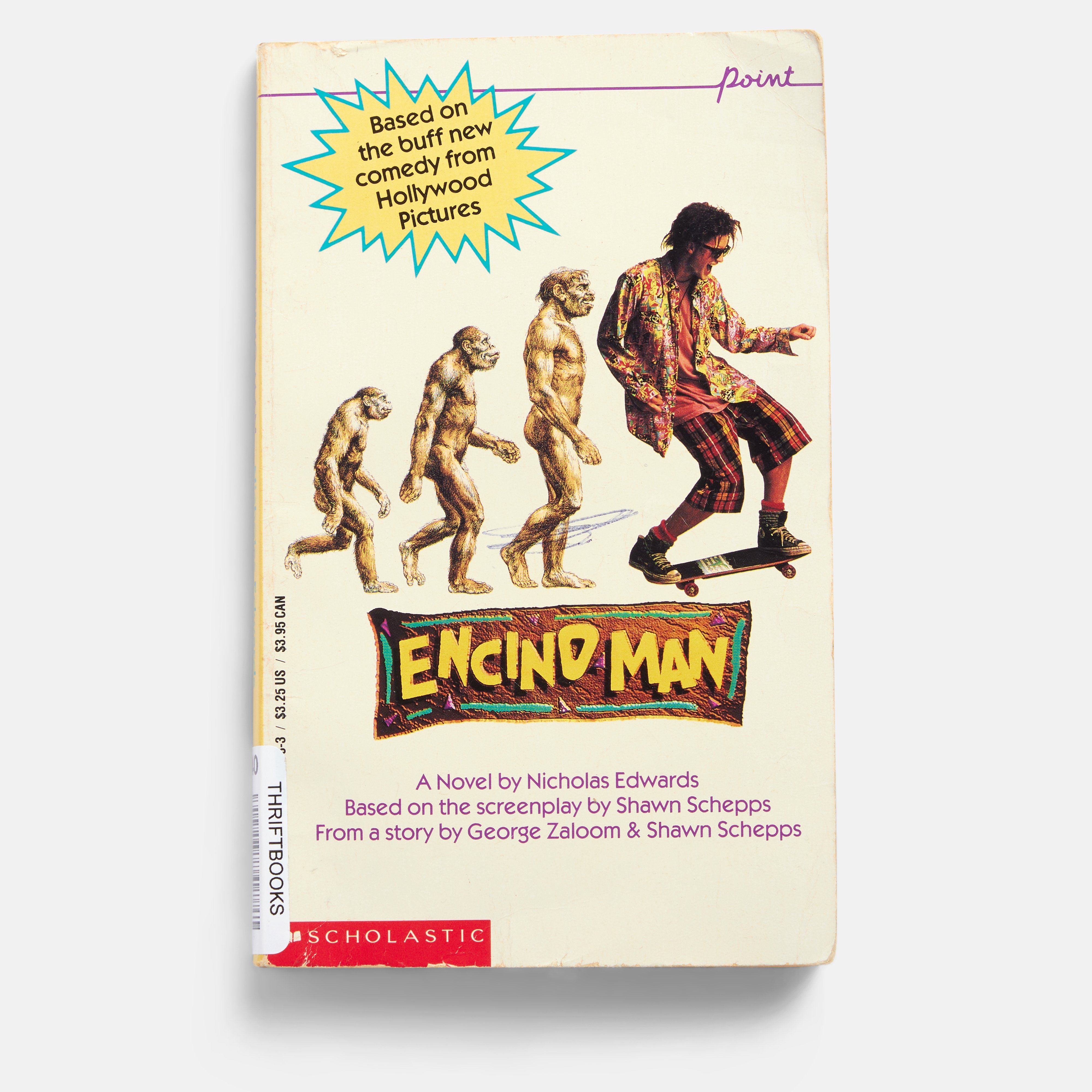 Encino Man paperback novel by Nicholas Edwards based on the screenplay by Shawn Schepps. Good condition.