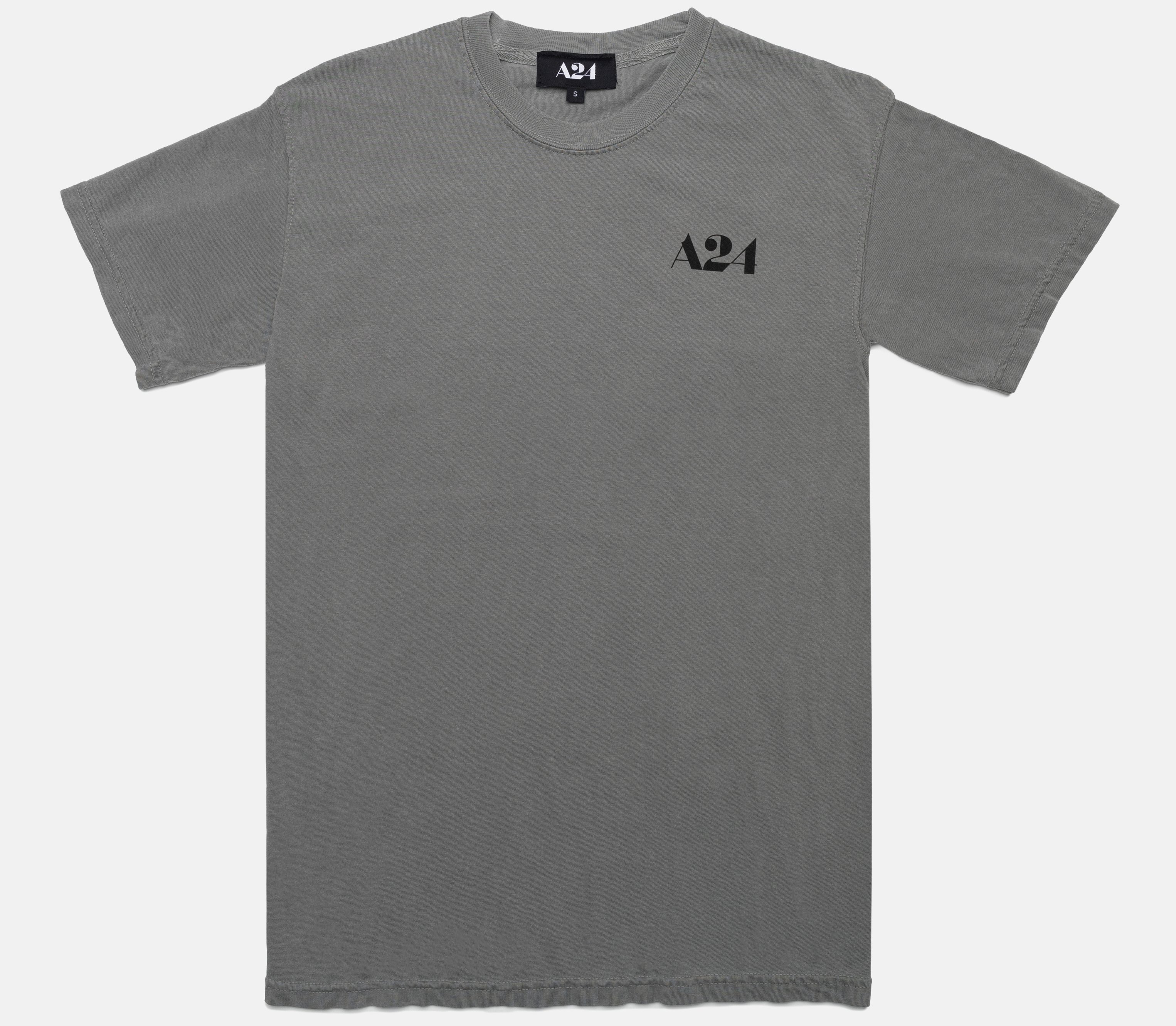 Pigment-dyed, pre-shrunk short sleeve cotton t-shirt with screen printed logo on left chest and A24 woven label inside. 100% soft-combed ringspun cotton. Fits true-to-size.
