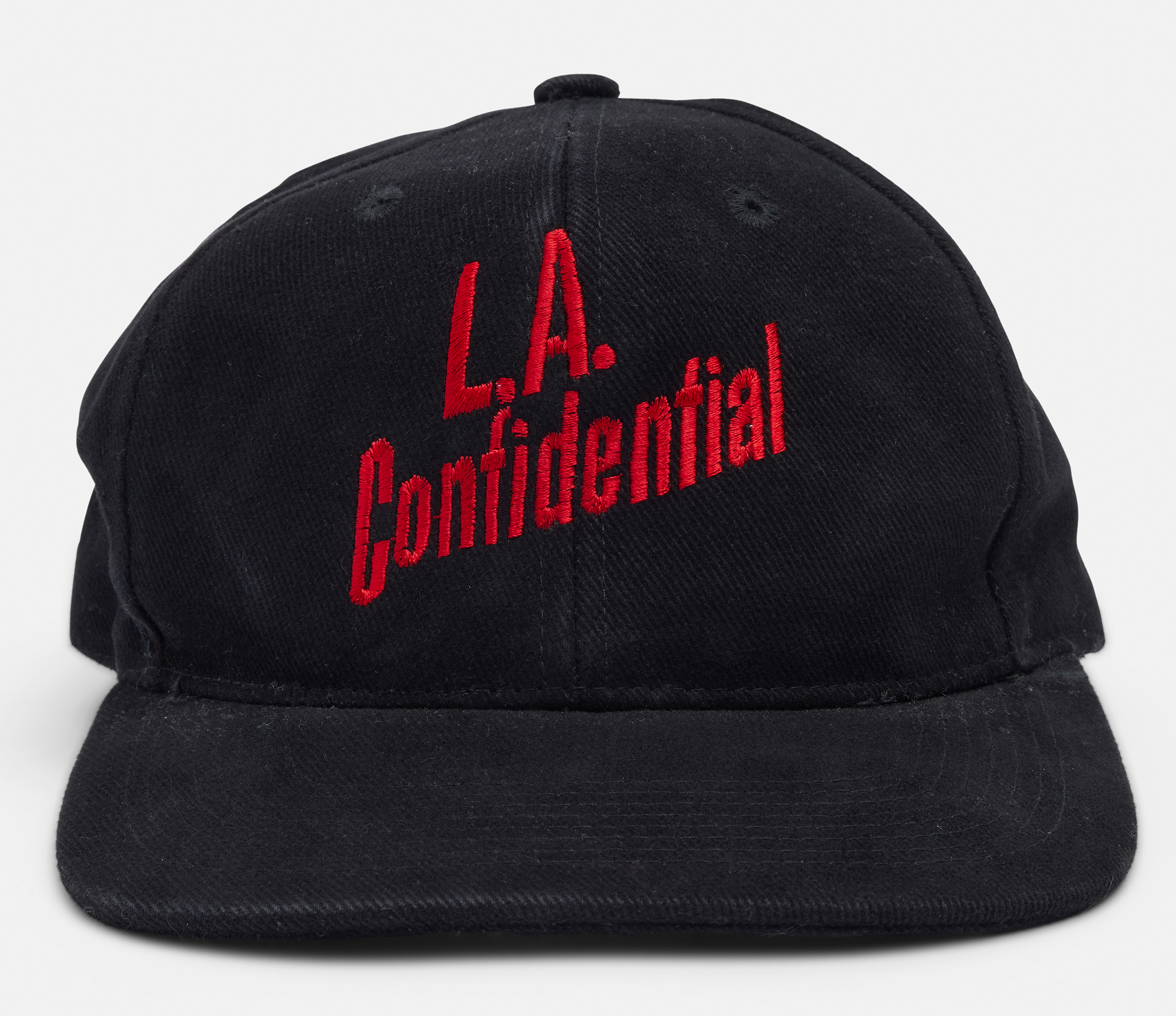 Promotional strap back hat from the 1997 Cannes premiere of L.A. Confidential. "Cannes 50th Annviersary" embroidery on back.