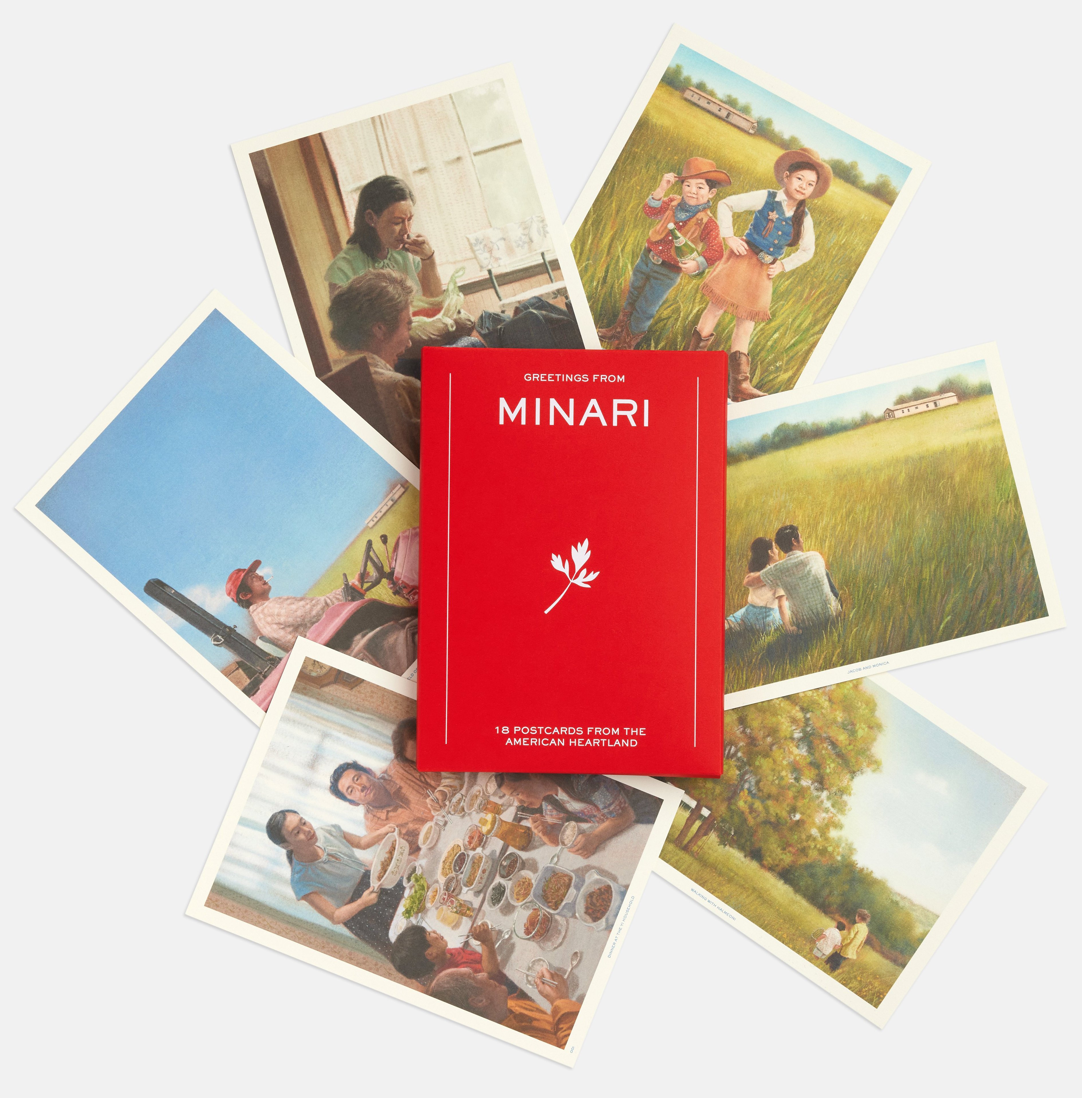 Set of 18 postcards featuring 6 illustrations by Sojung Kim-McCarthy, enclosed in a foil-printed red band and envelope. Includes a message from Minari filmmaker Lee Isaac Chung.