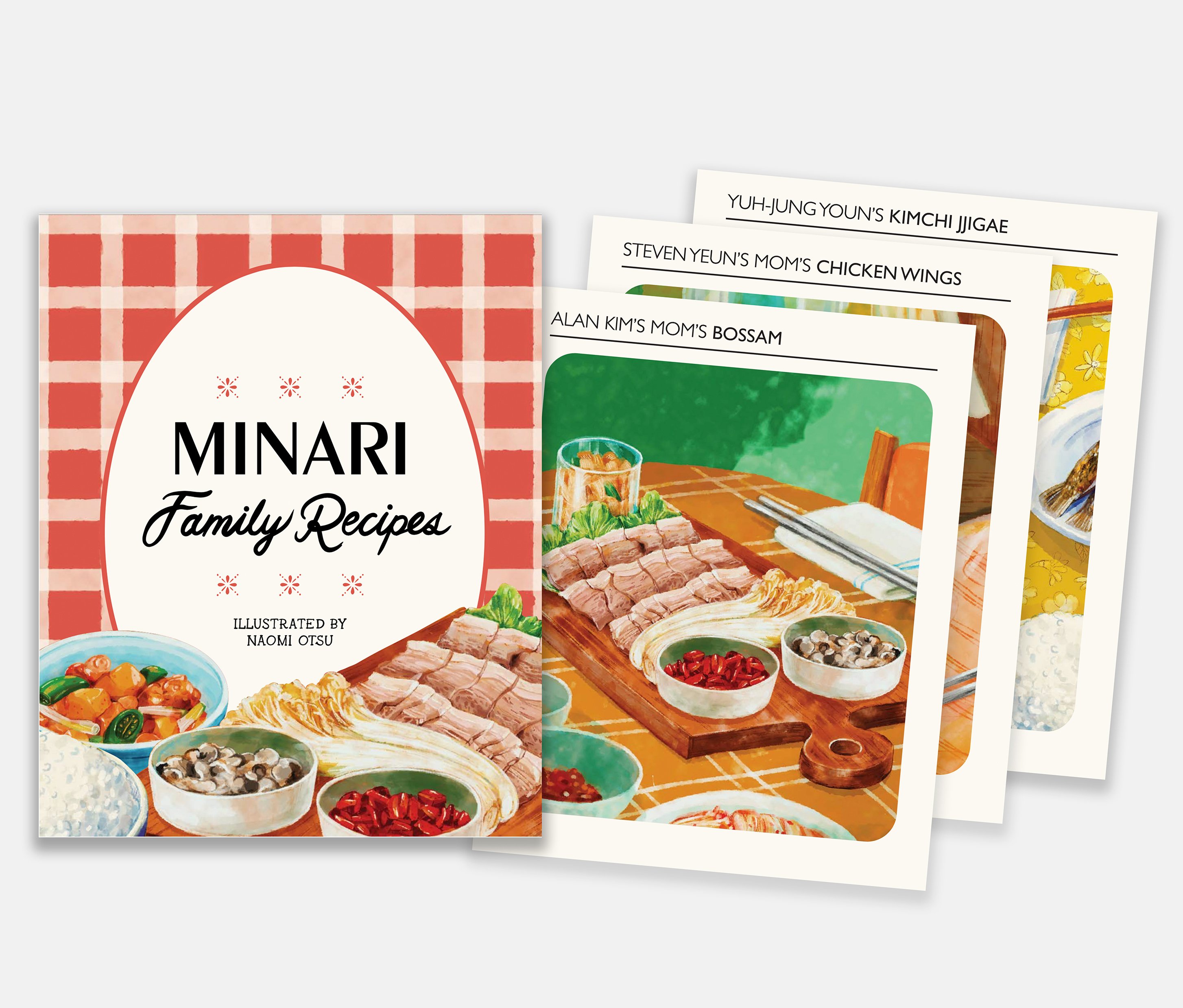 From the Minari family table to yours. 10 very special recipes from Lee Isaac Chung and the cast, with original illustrations by Naomi Otsu.