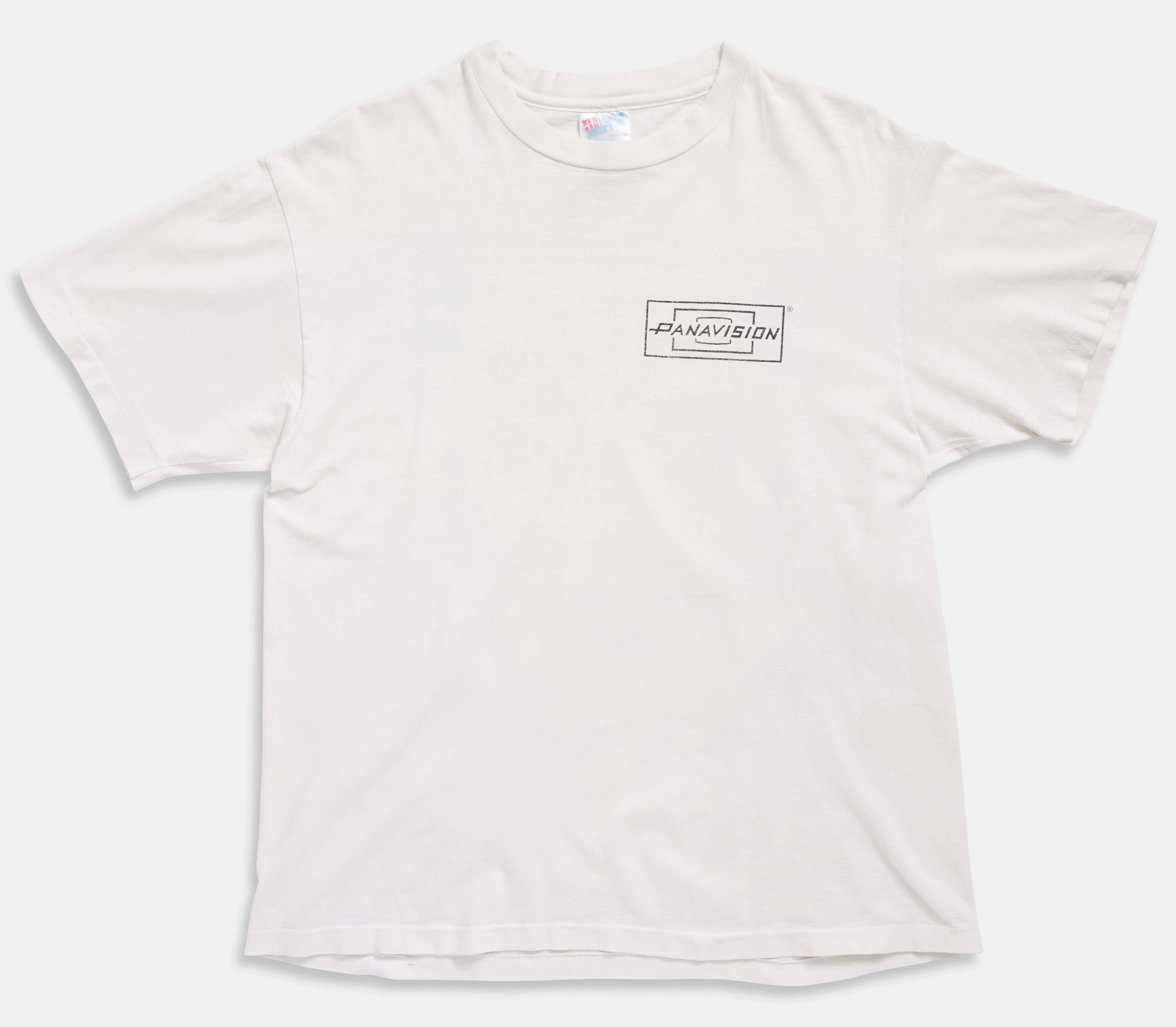 Panavision USA t-shirt from early 90s. Logo chest hit on front with camera focus graphic on back. Good vintage condition with nice fade throughout.