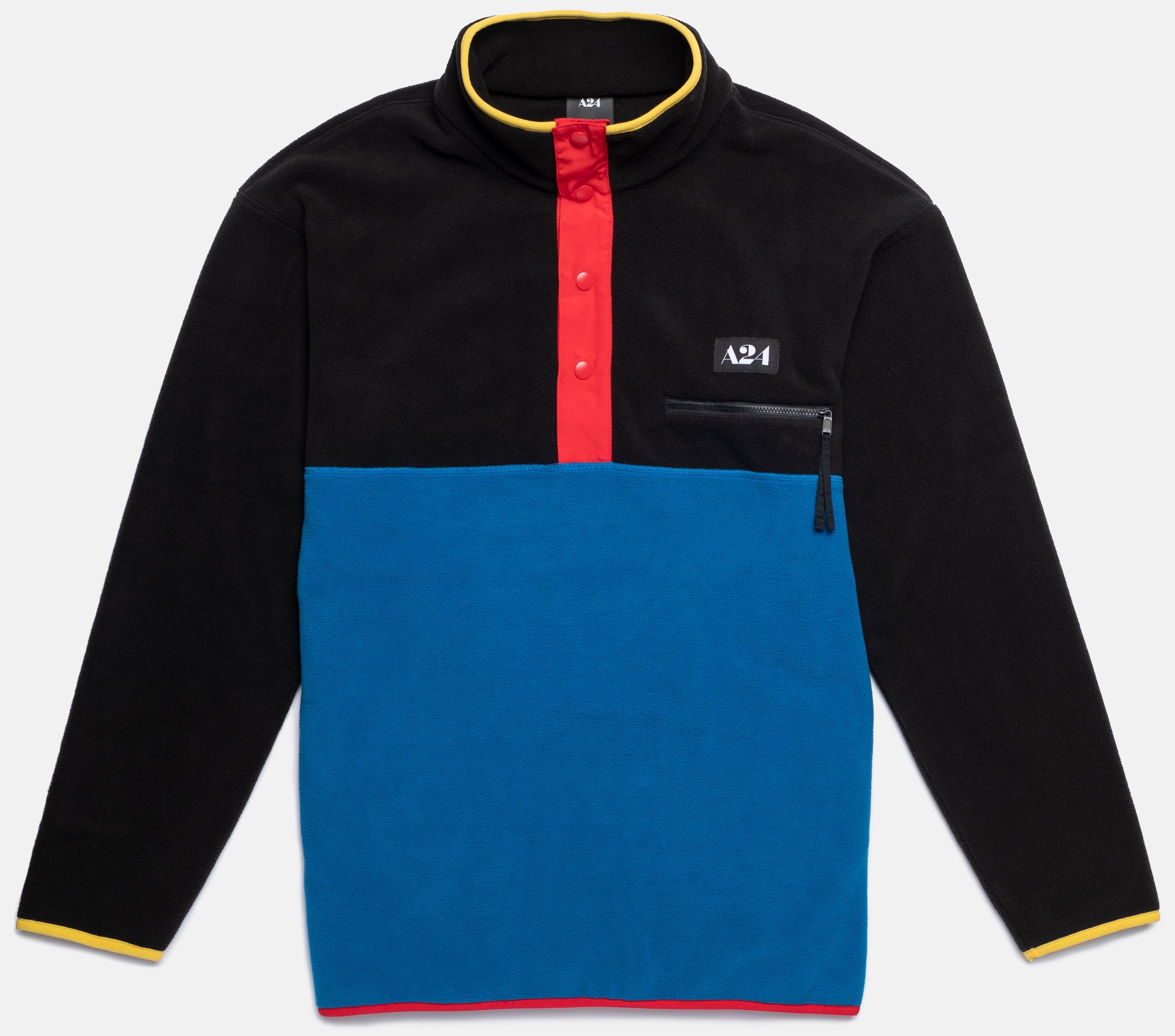 Cut-and-sew pullover fleece with pockets on side and left side chest. Contrast color elastic piping on collar, cuffs, and bottom.