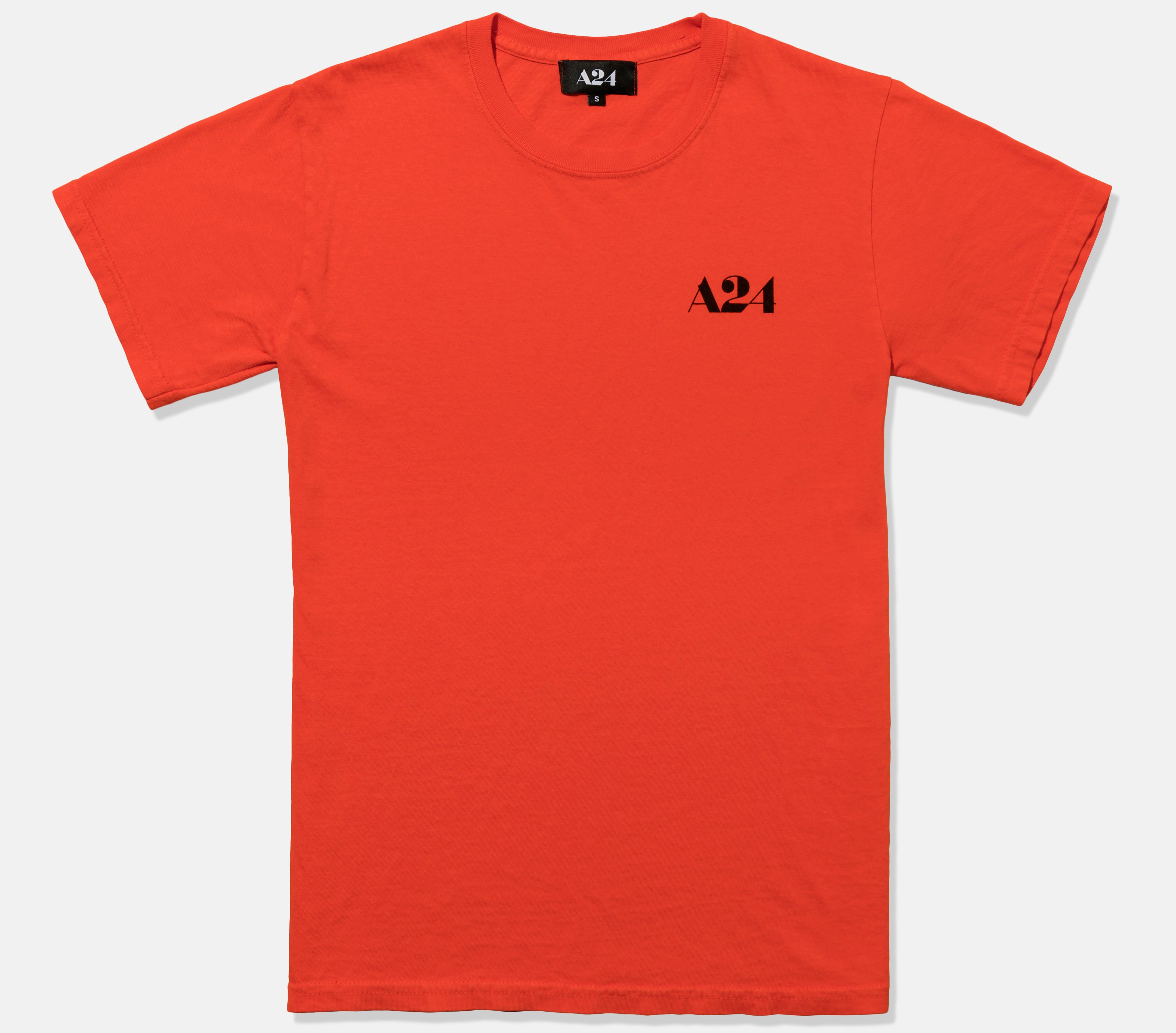Hand-dyed, short sleeve cotton t-shirt with screen printed logo on left chest and A24 woven label inside. Fits true-to-size.