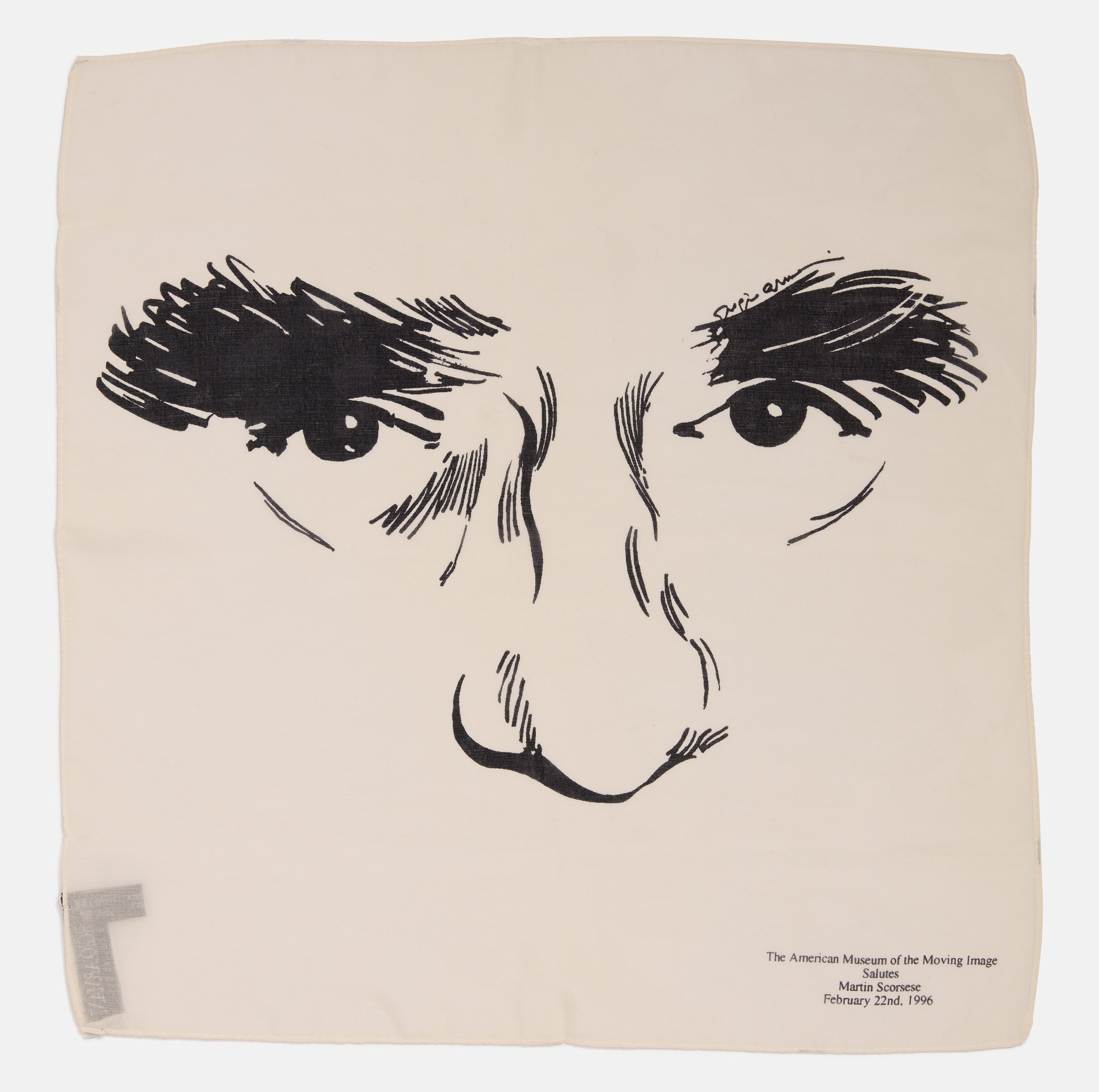 Giorgio Armani silk scarf from the 1996 Museum of the Moving Image tribute to Martin Scorsese. Excellent vintage condition.