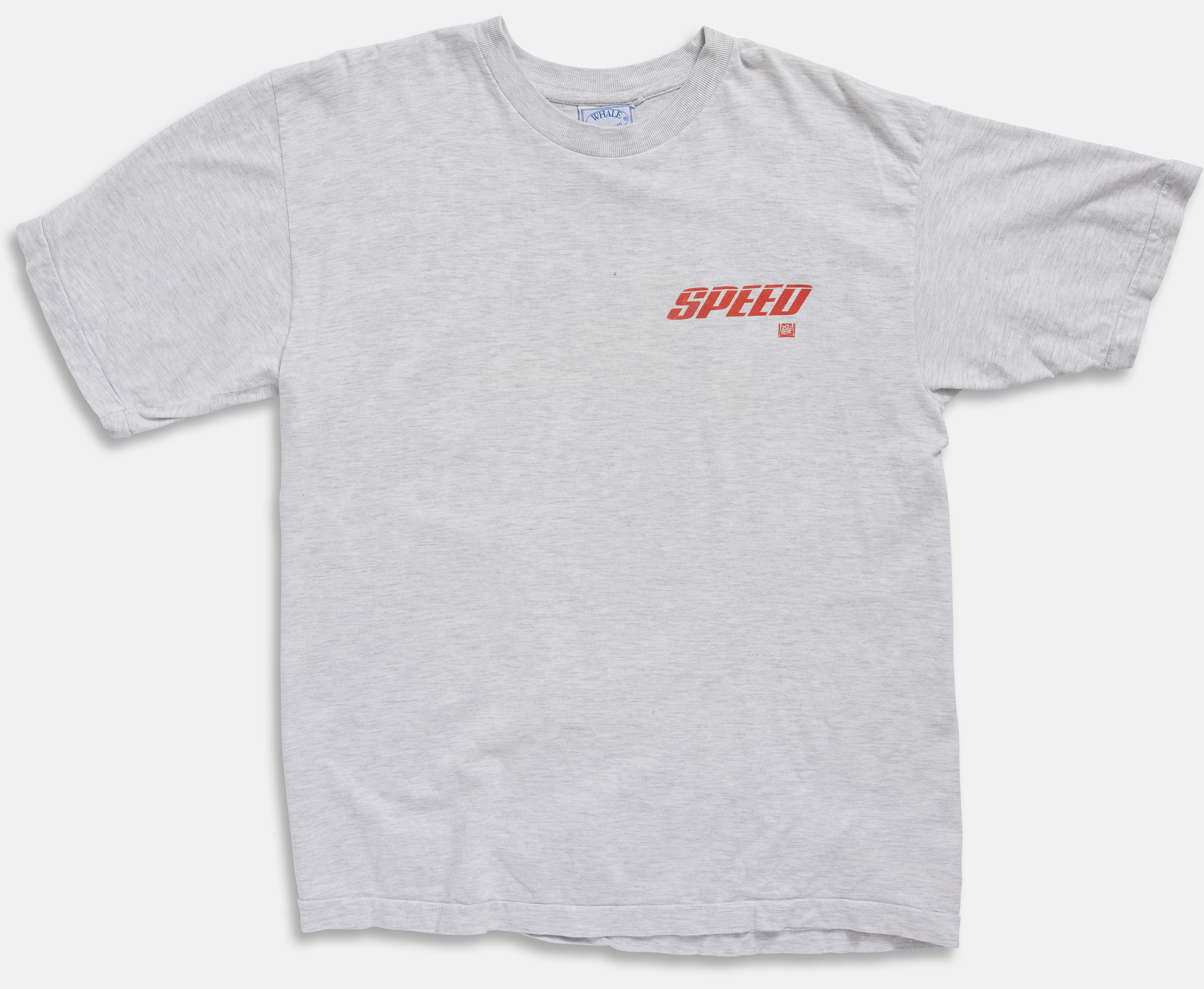 Promotional t-shirt for Speed (1994). "Get Ready For Rush Hour" printed on back. Good vintage condition with nice wear and fade on graphics.