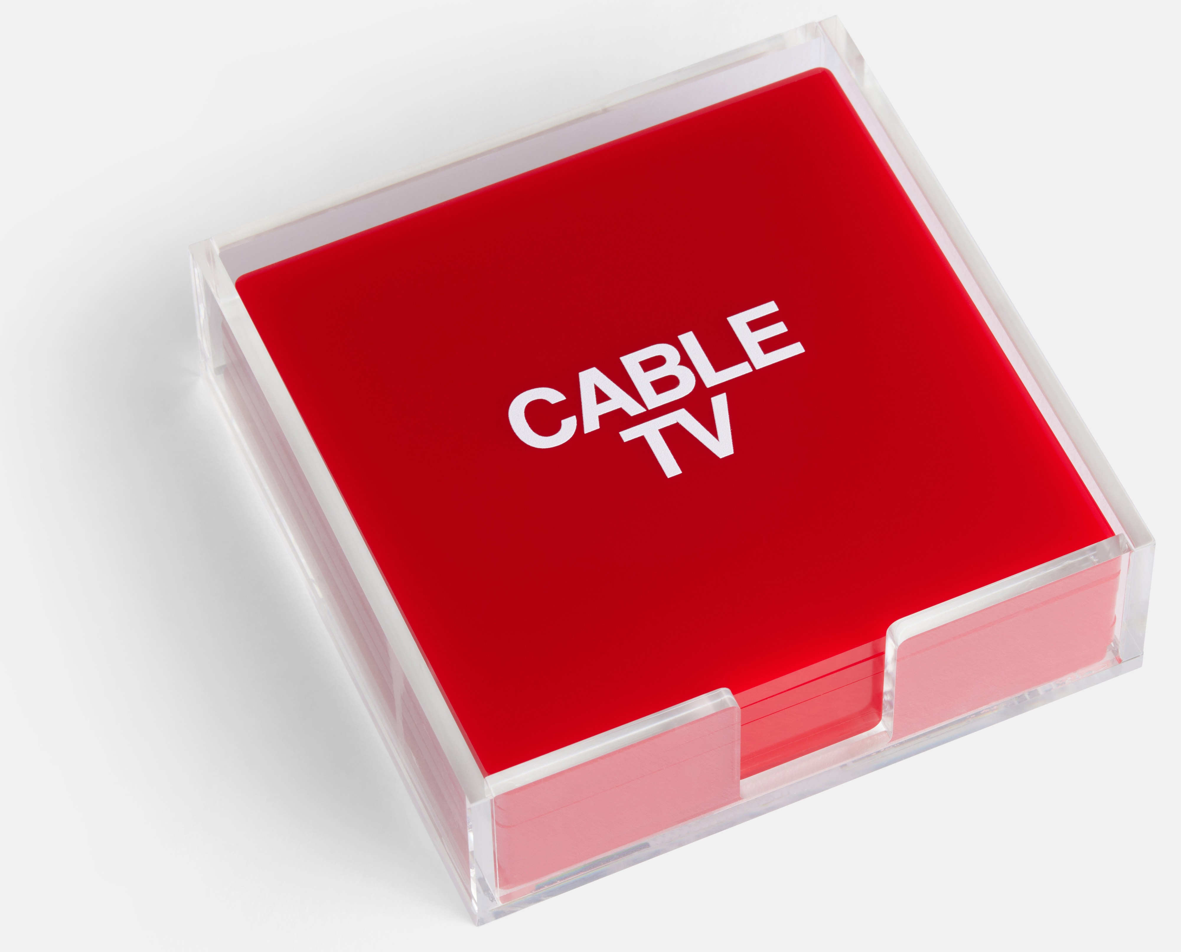Six red acrylic coasters to celebrate the 40th anniversary of Stop Making Sense.