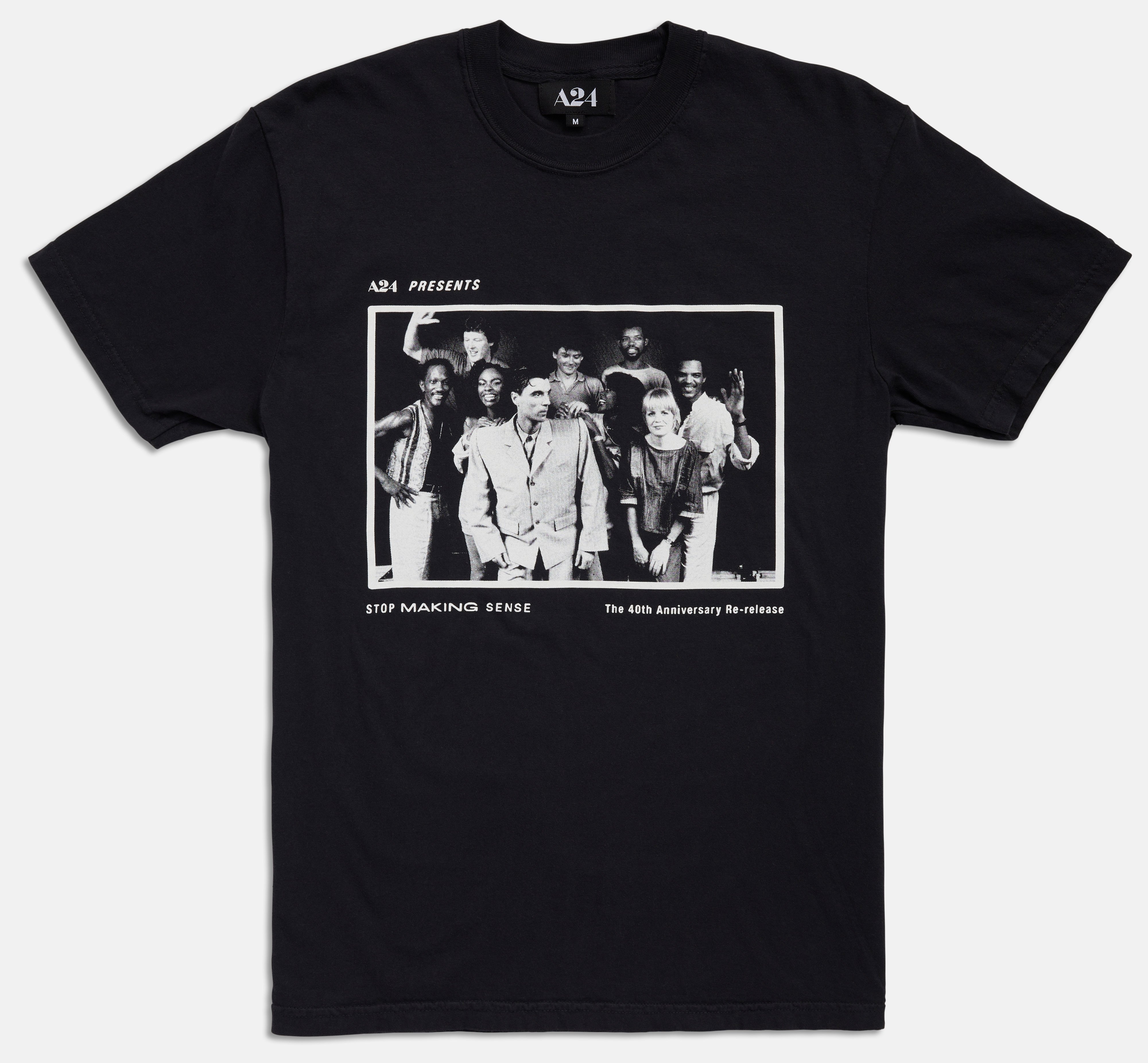 Limited edition screenprinted black short sleeve t-shirt to celebrate the 40th anniversary of Stop Making Sense.