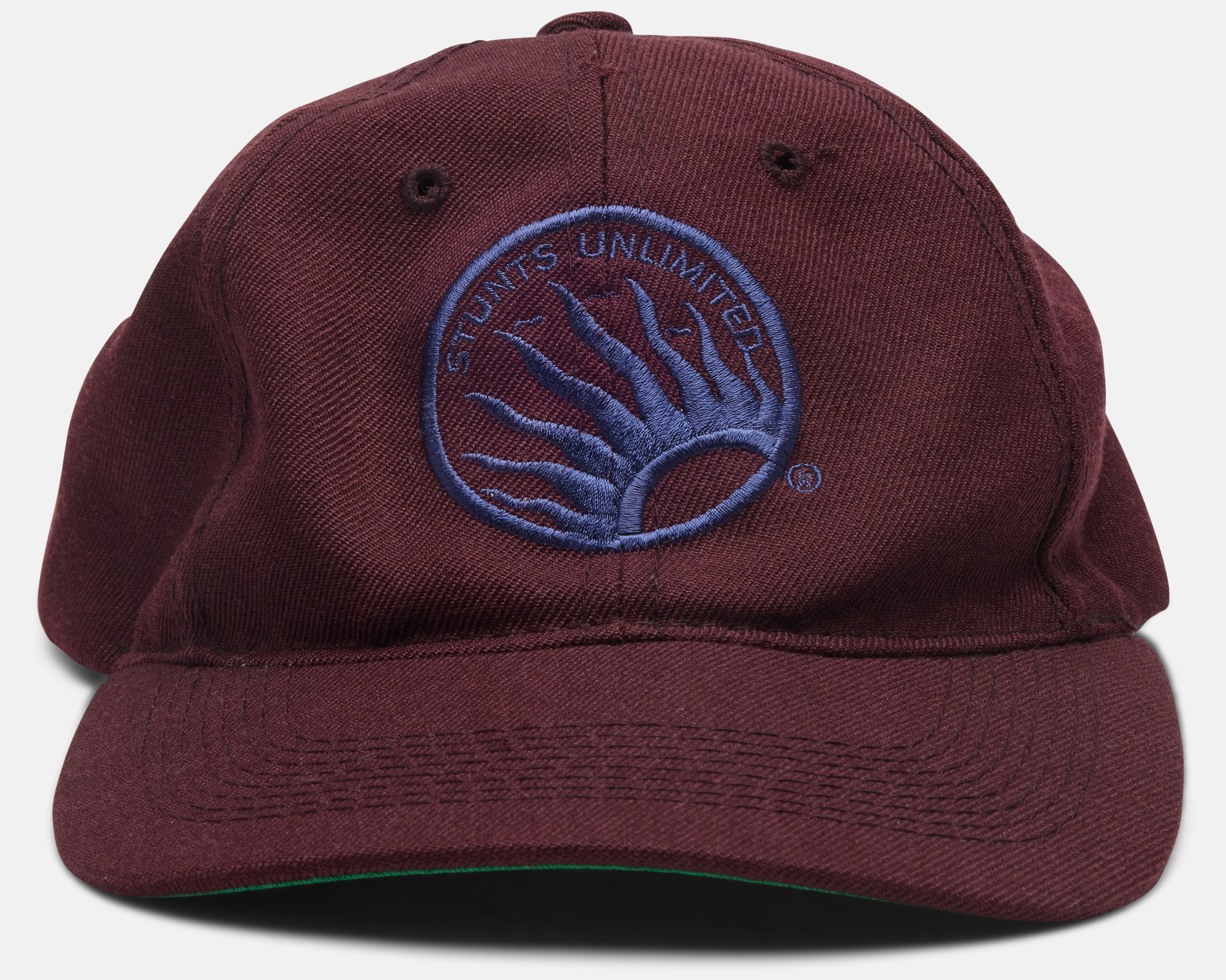 Maroon Stunts Unlimited employee snapback with kelly green underbill and logo embroidery on back. Great condition.