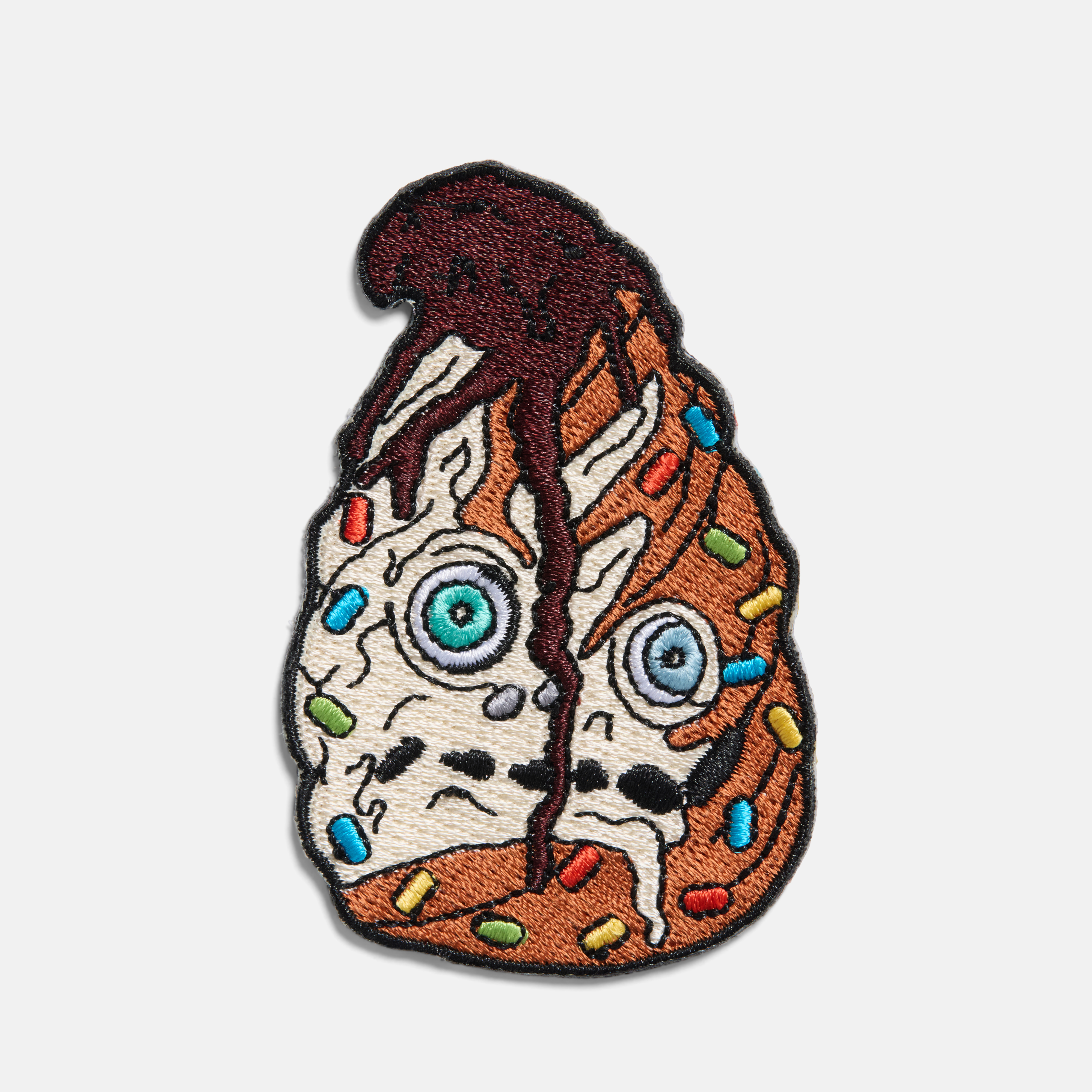 Embroidered patch of The Pink Opaque's Mr. Sprinkly.