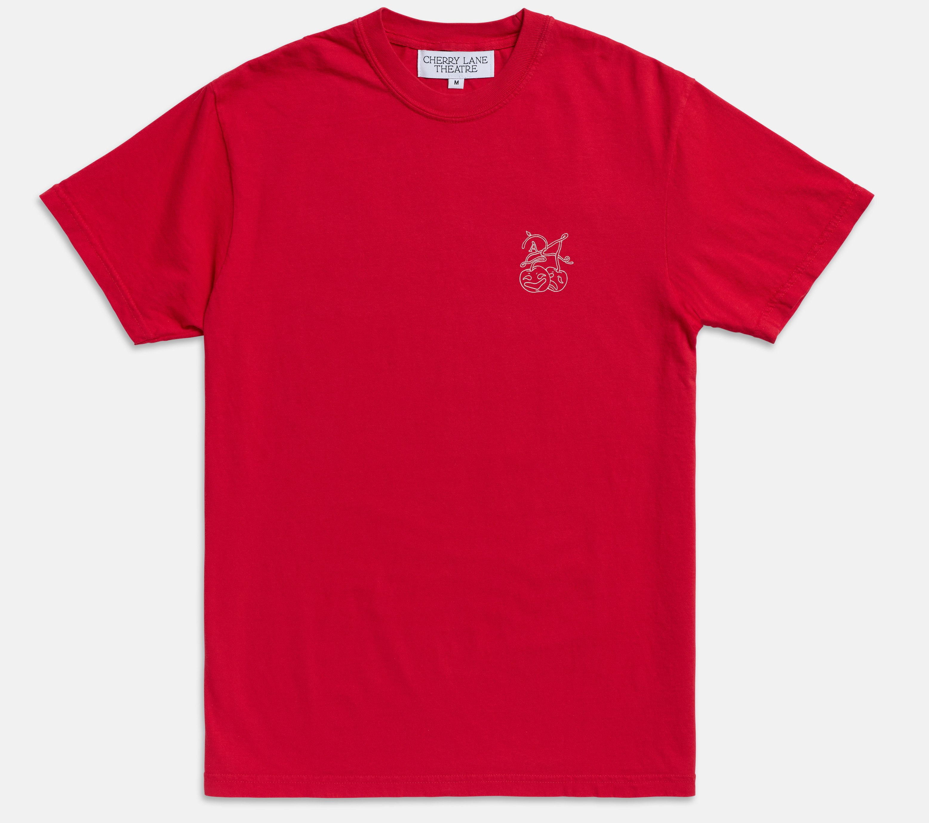 Red short sleeve t-shirt with screenprinted logo on the front. Cherry Lane Theatre woven label inside.