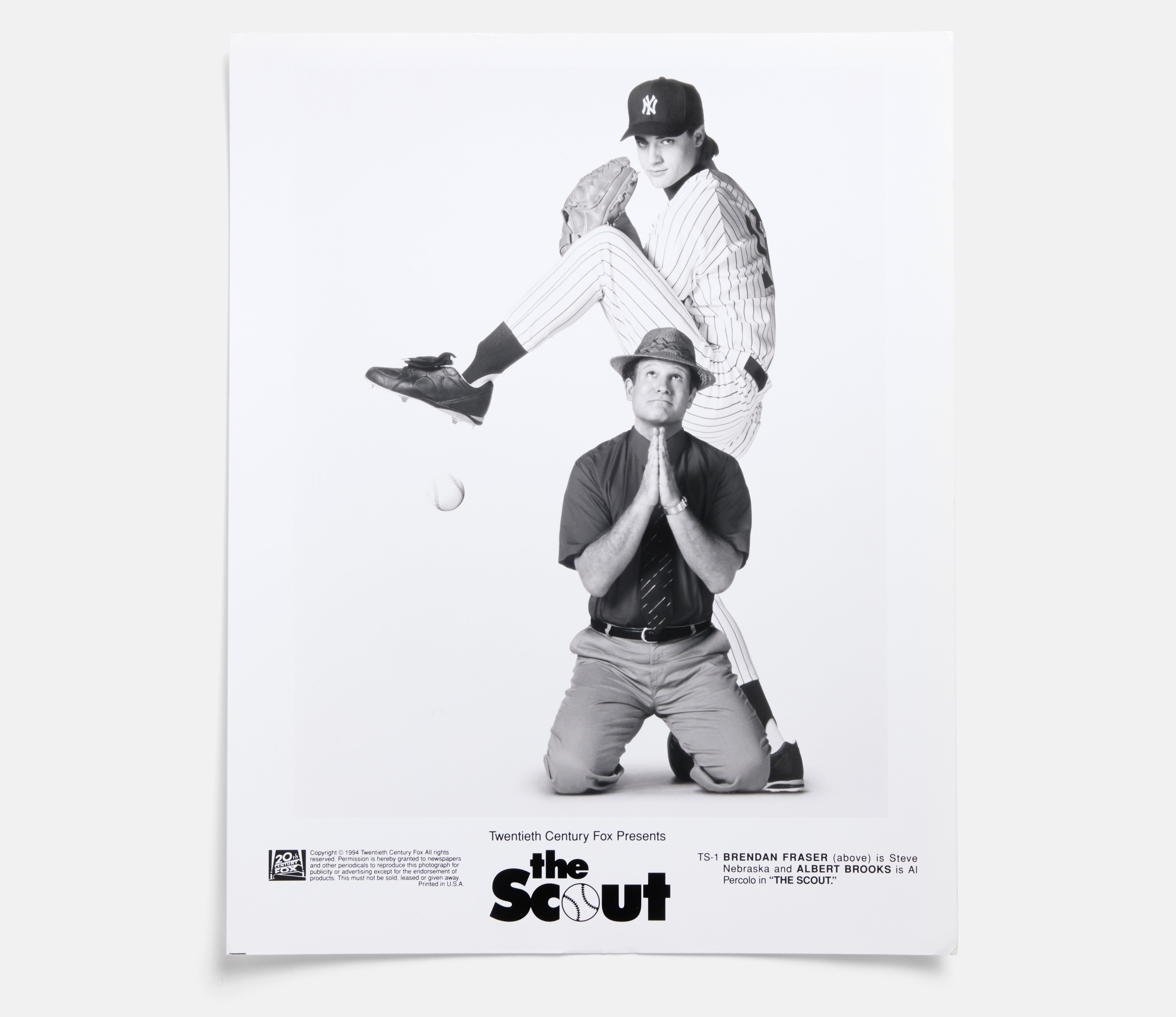 Lobby card for Michael Ritchie's The Scout (1994) featuring Brendan Fraser and Albert Brooks.