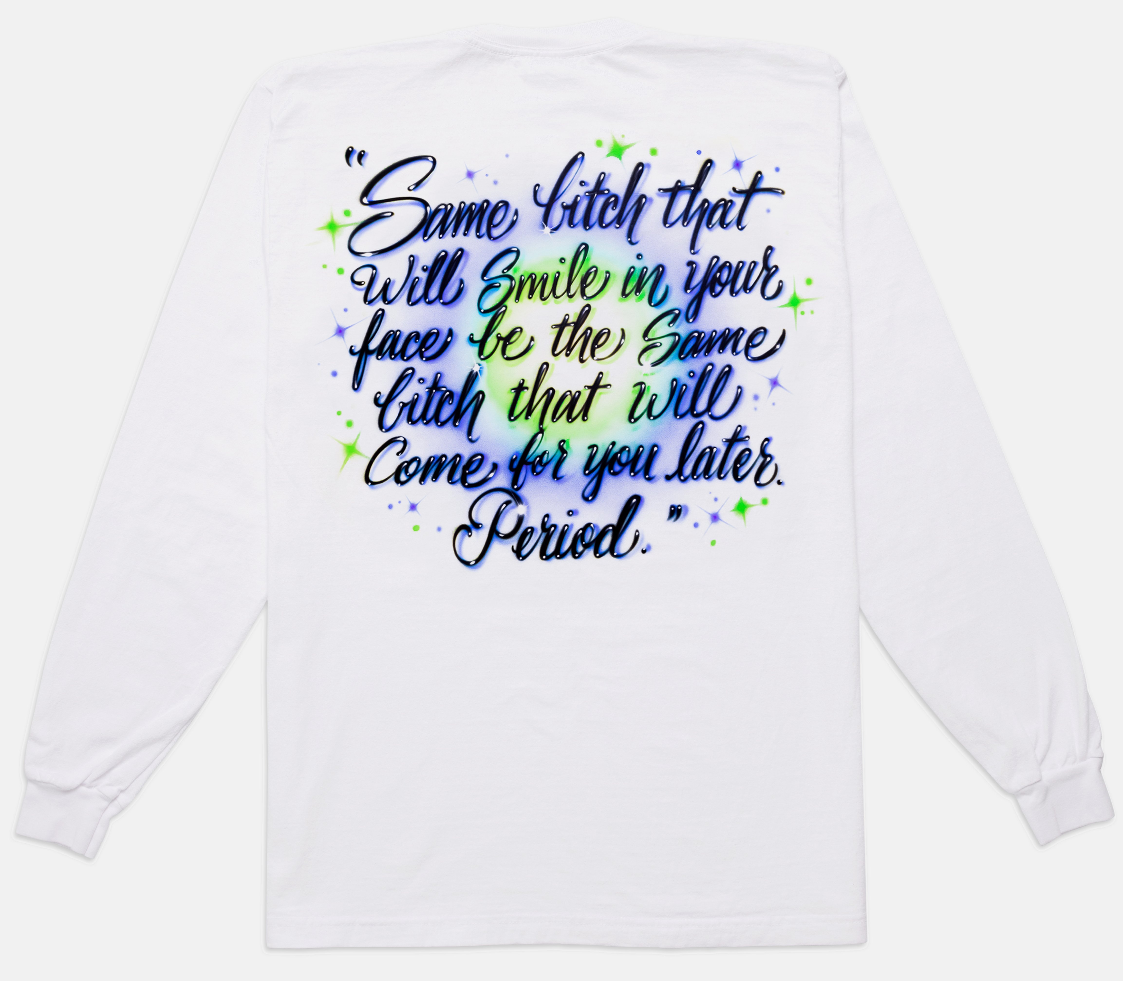 Limited edition long sleeve tee with artwork by Hassan Rahim.